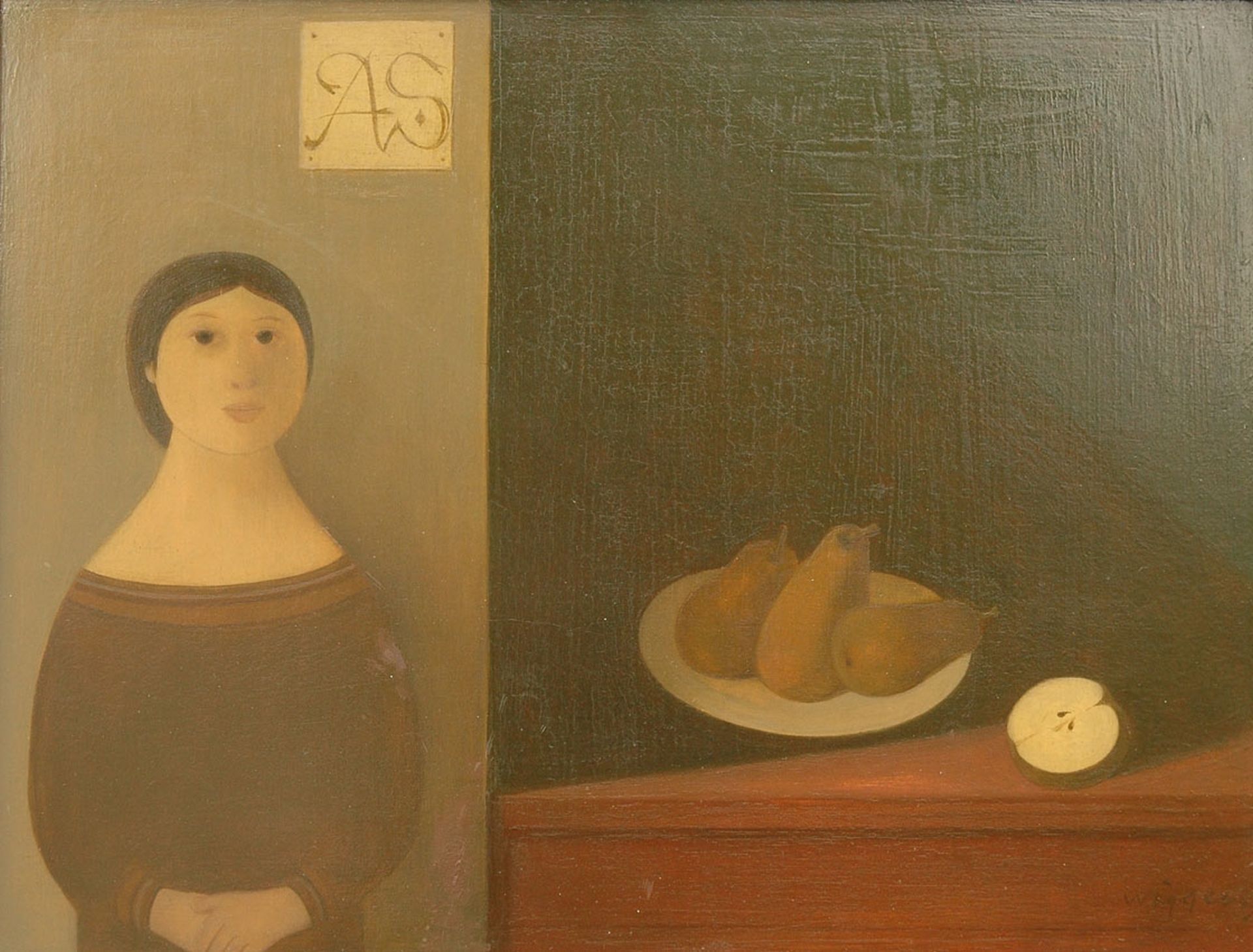 Karel Wiggers kunstwerk • schilderij • voorheen te koop Meisje in een interieur