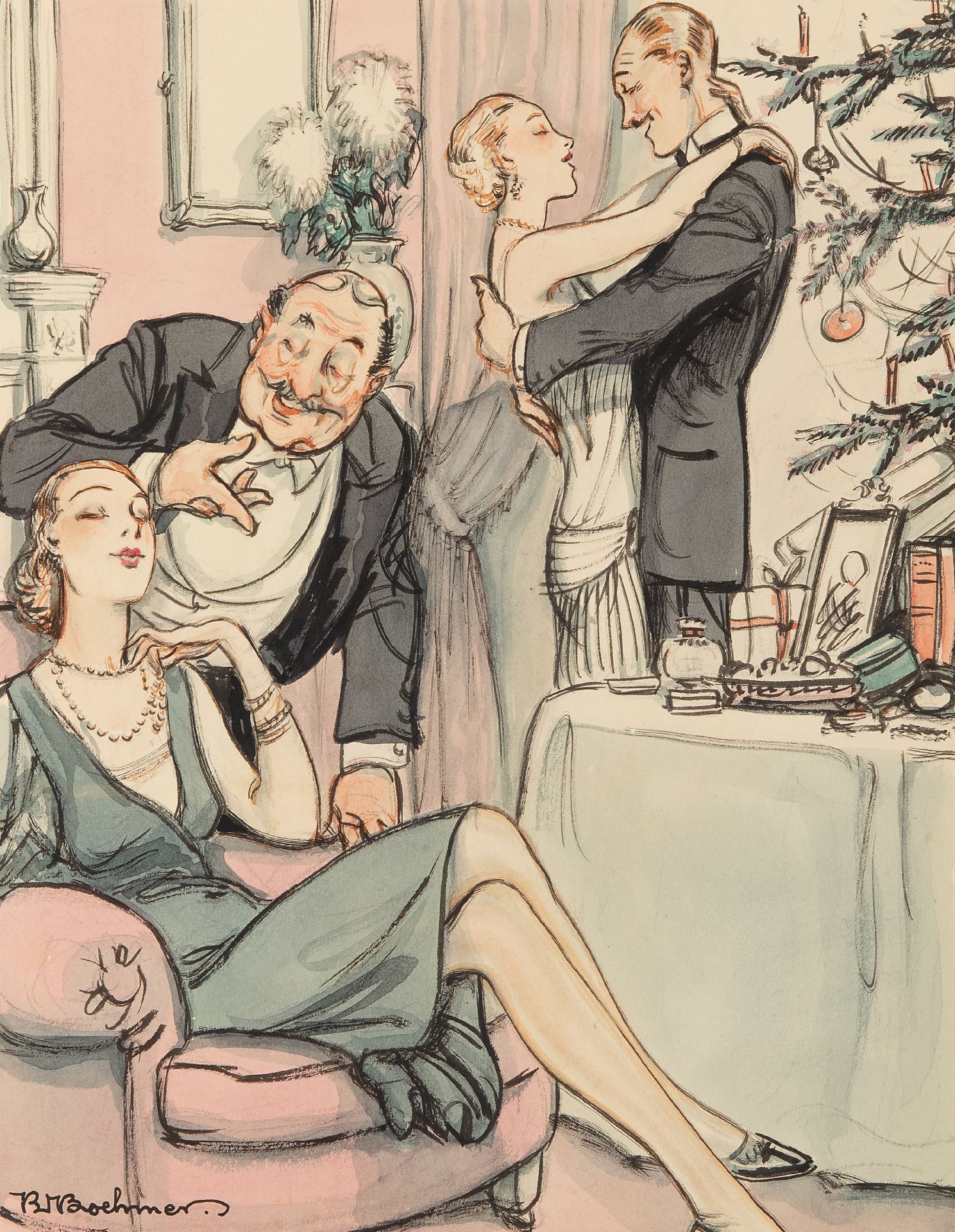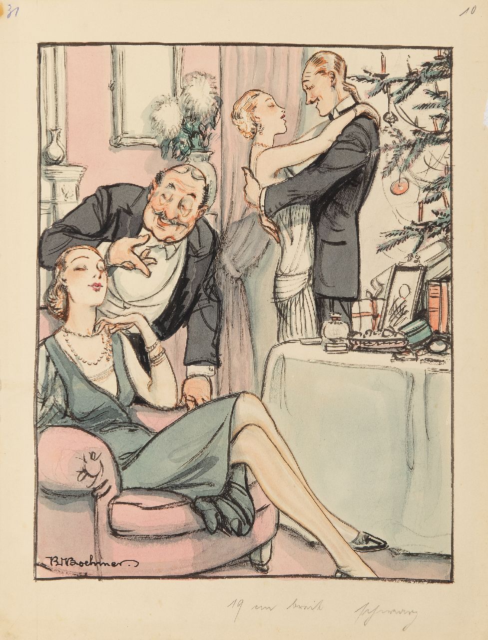 Karl Wolfgang Boehmer kunstwerk • aquarel • tekening • voorheen te koop Kerstavond