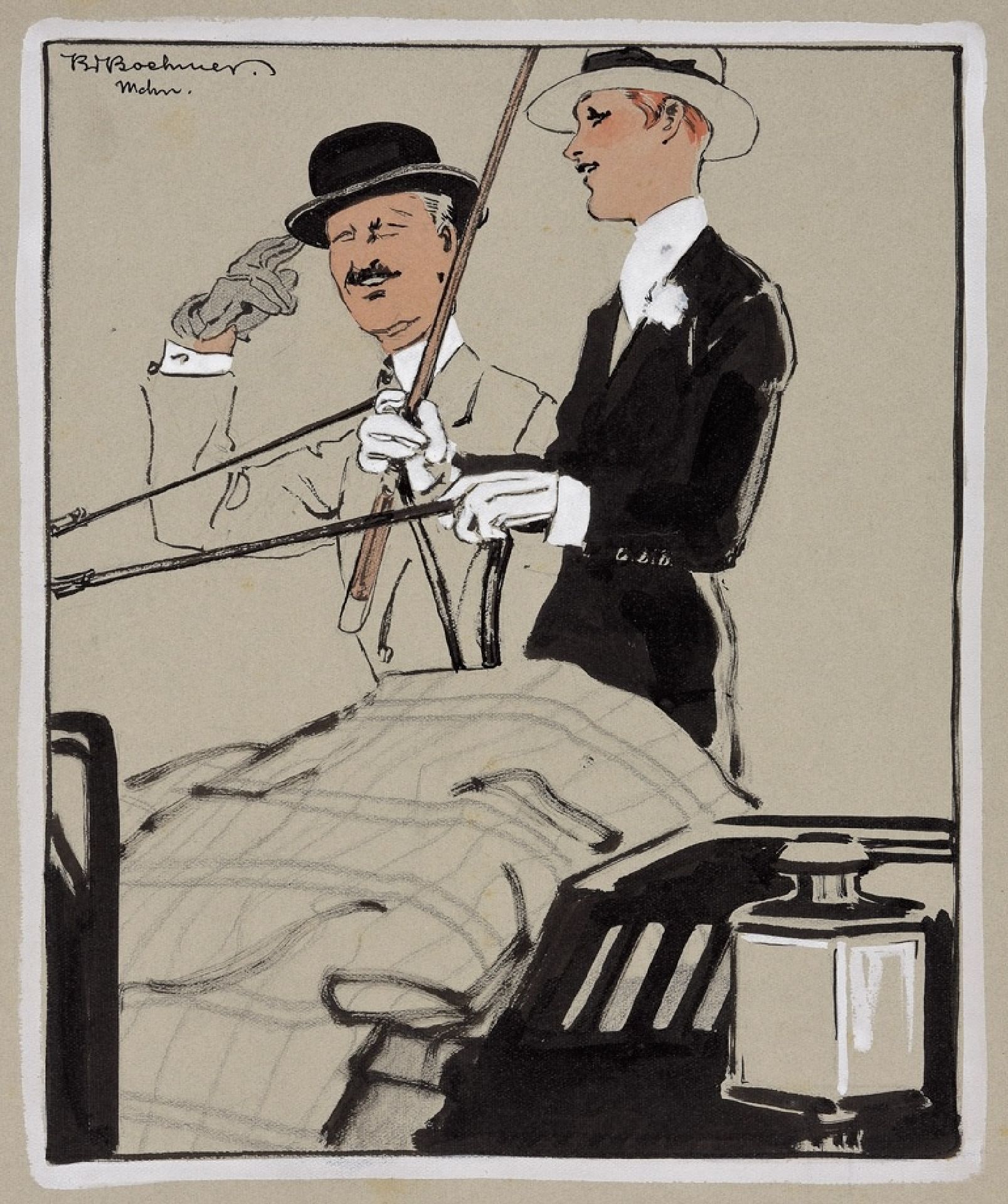 Karl Wolfgang Boehmer kunstwerk • aquarel • tekening • te koop Met het rijtuig op pad
