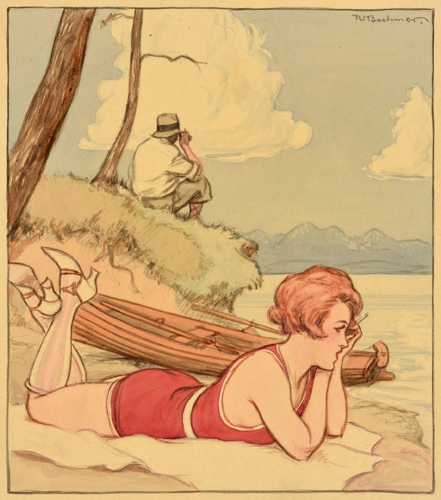 Karl Wolfgang Boehmer kunstwerk • aquarel • tekening • te koop Op het strand