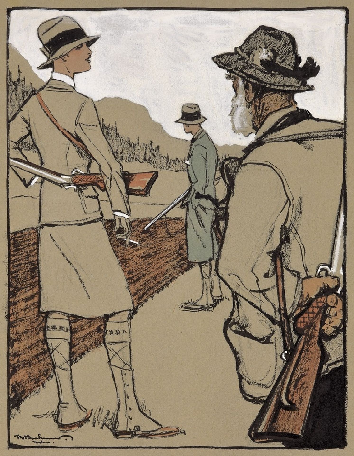 Karl Wolfgang Boehmer kunstwerk • aquarel • tekening • voorheen te koop Pauze tijdens de jacht