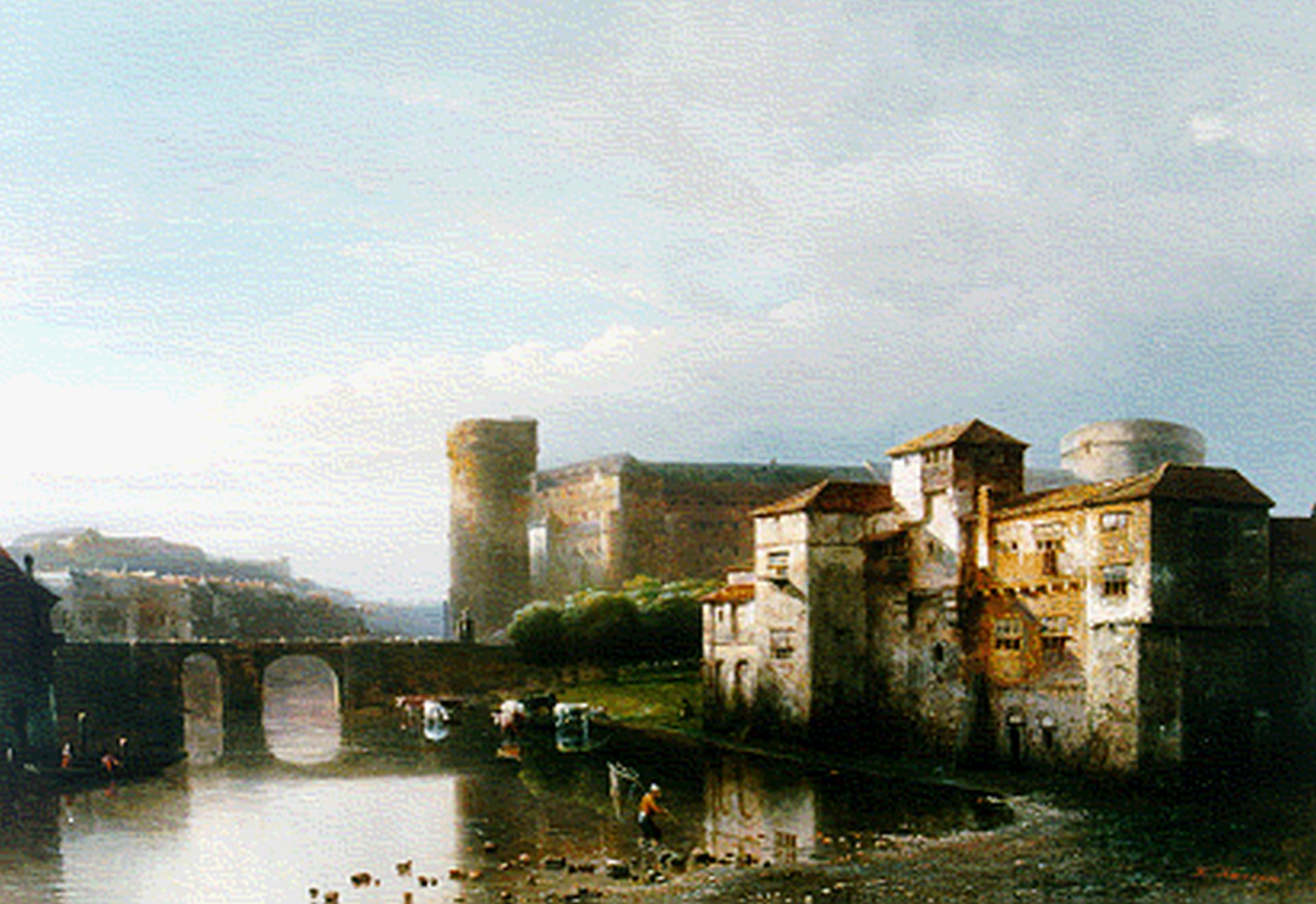 Kasparus Karsen kunstwerk • schilderij • voorheen te koop Stad met kasteel aan de rivier