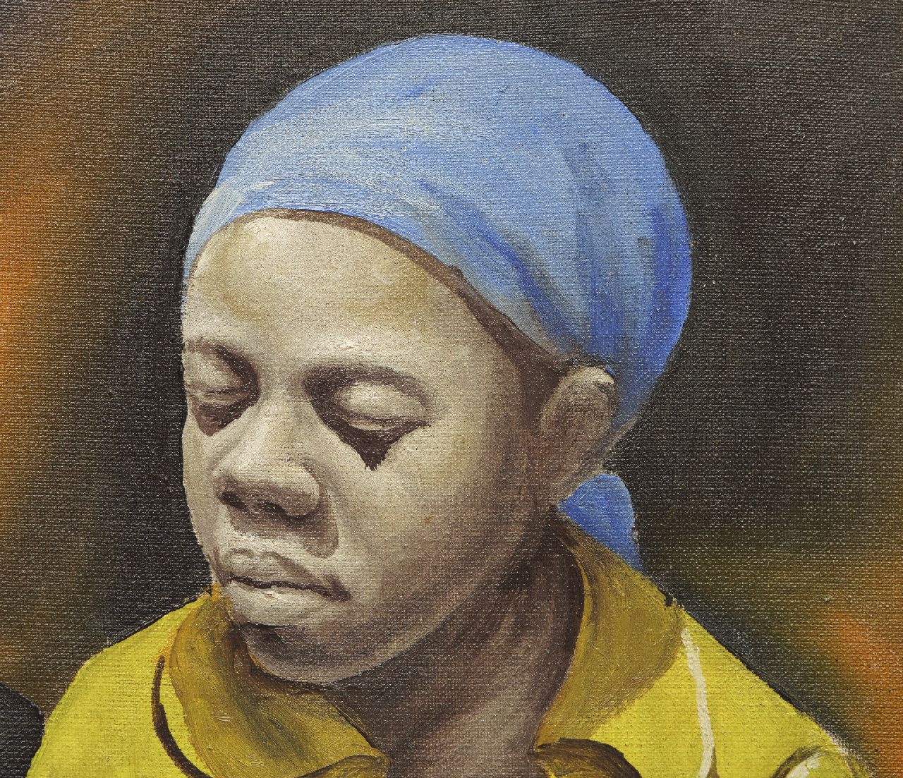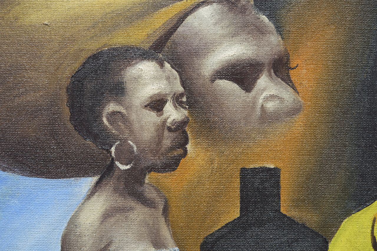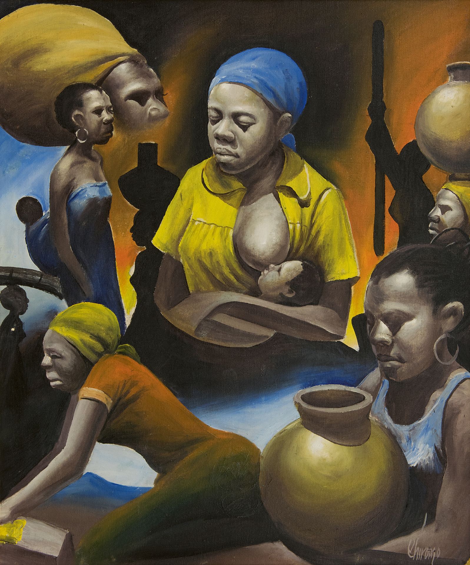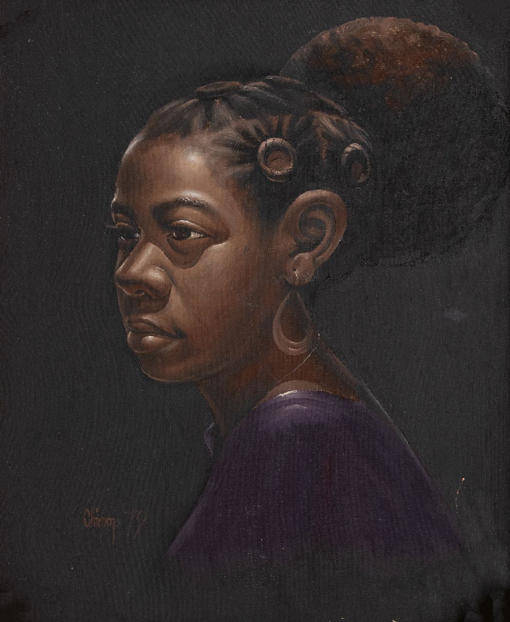 Kay Chiromo kunstwerk • schilderij • te koop Afrikaanse vrouwen; verso: Vrouwenportret