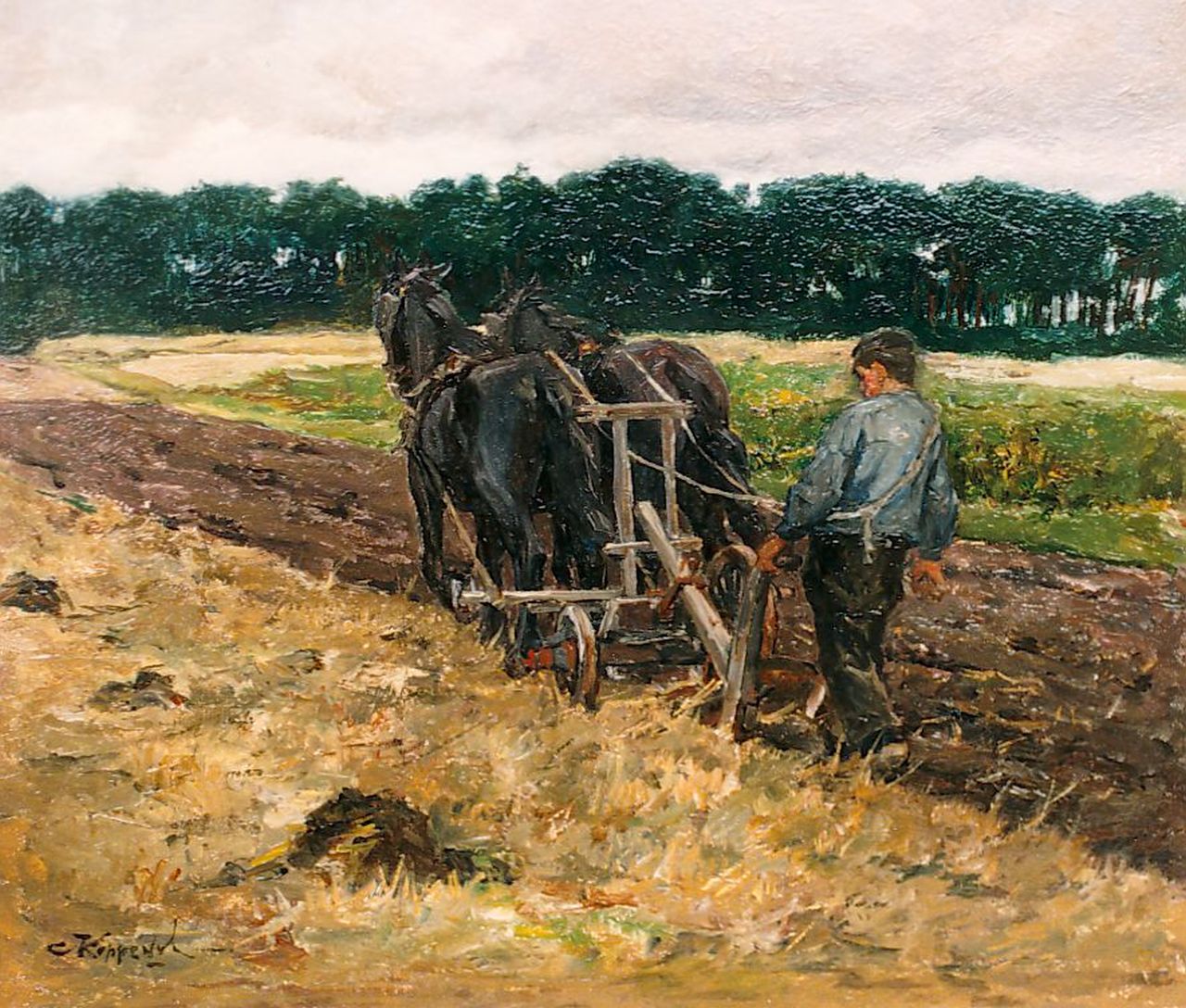Kees Koppenol kunstwerk • schilderij • voorheen te koop Ploegende boer