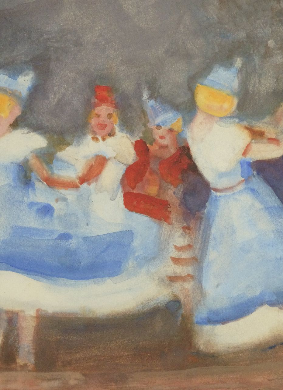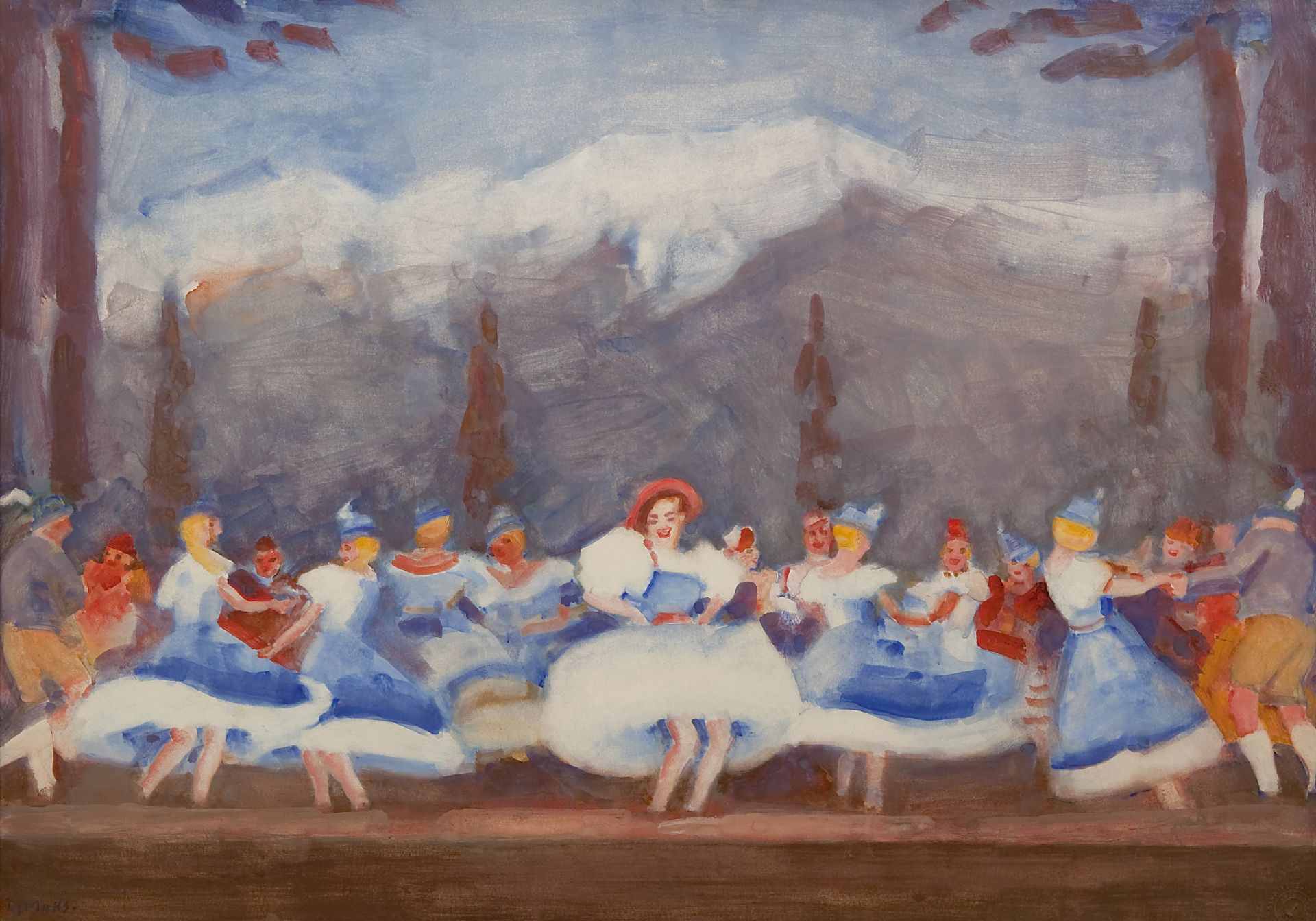 Kees Maks kunstwerk • aquarel • tekening • voorheen te koop Tiroler ballet in de Bouwmeester Revue