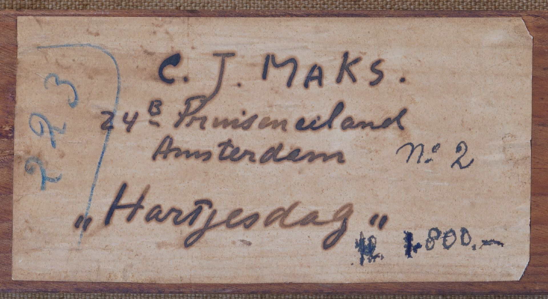 annotatie op etiket op spieraam: 'C.J. Maks ,,Hartjesdag''