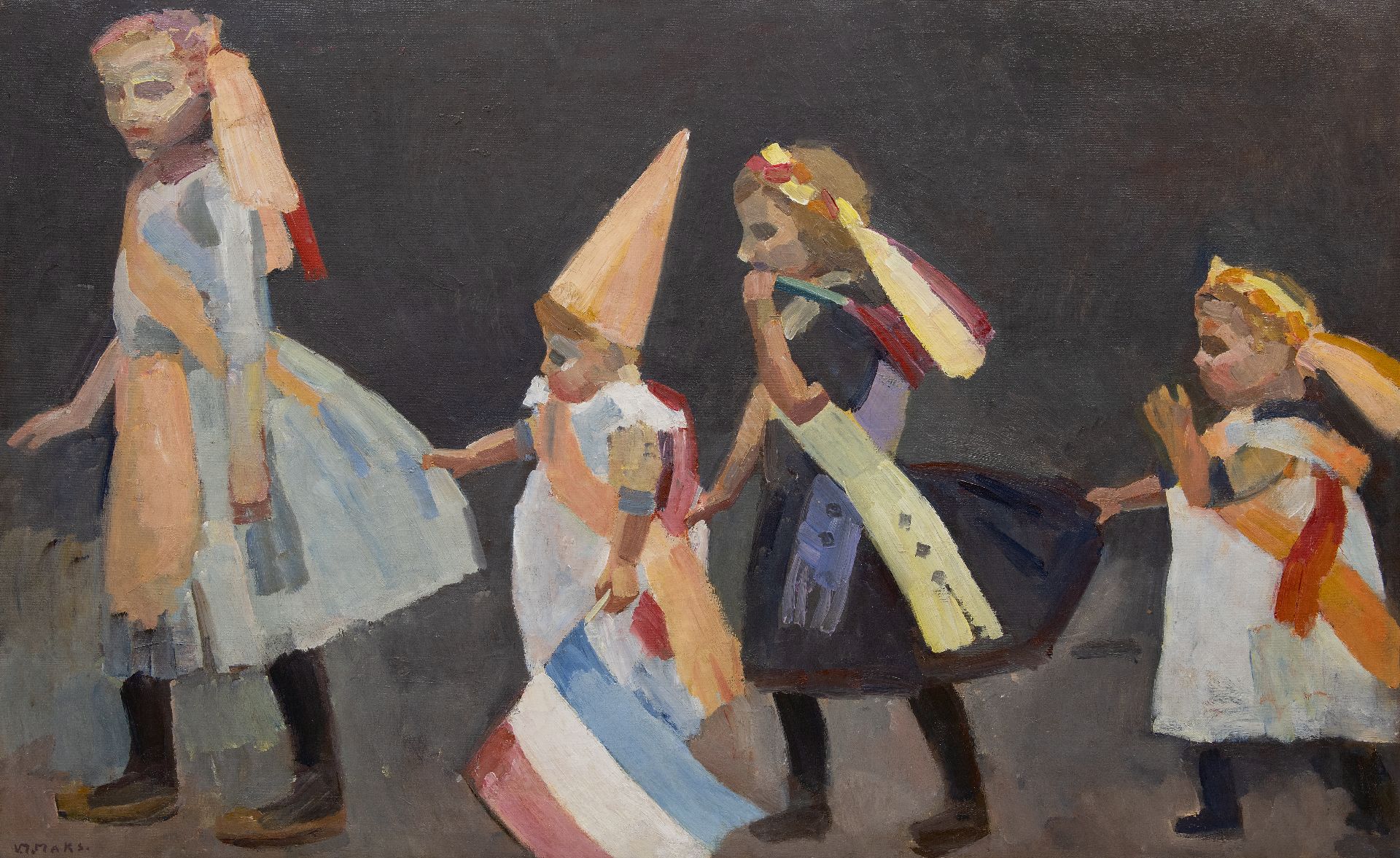 Hartjesdag is een kleurrijk, eeuwenoud buurtfeest op de Amsterdamse Zeedijk, dat jaarlijks plaatsvindt op de derde maandag van augustus. Op deze dag verkleden mannen zich als vrouwen en vrouwen als mannen – een traditie die ooit uit armoede ontstond, maar uitgroeide tot een vrolijk ritueel. De kinderen – geschilderd in de typische hoekige Maks-stijl – flaneren, zingen en feesten.