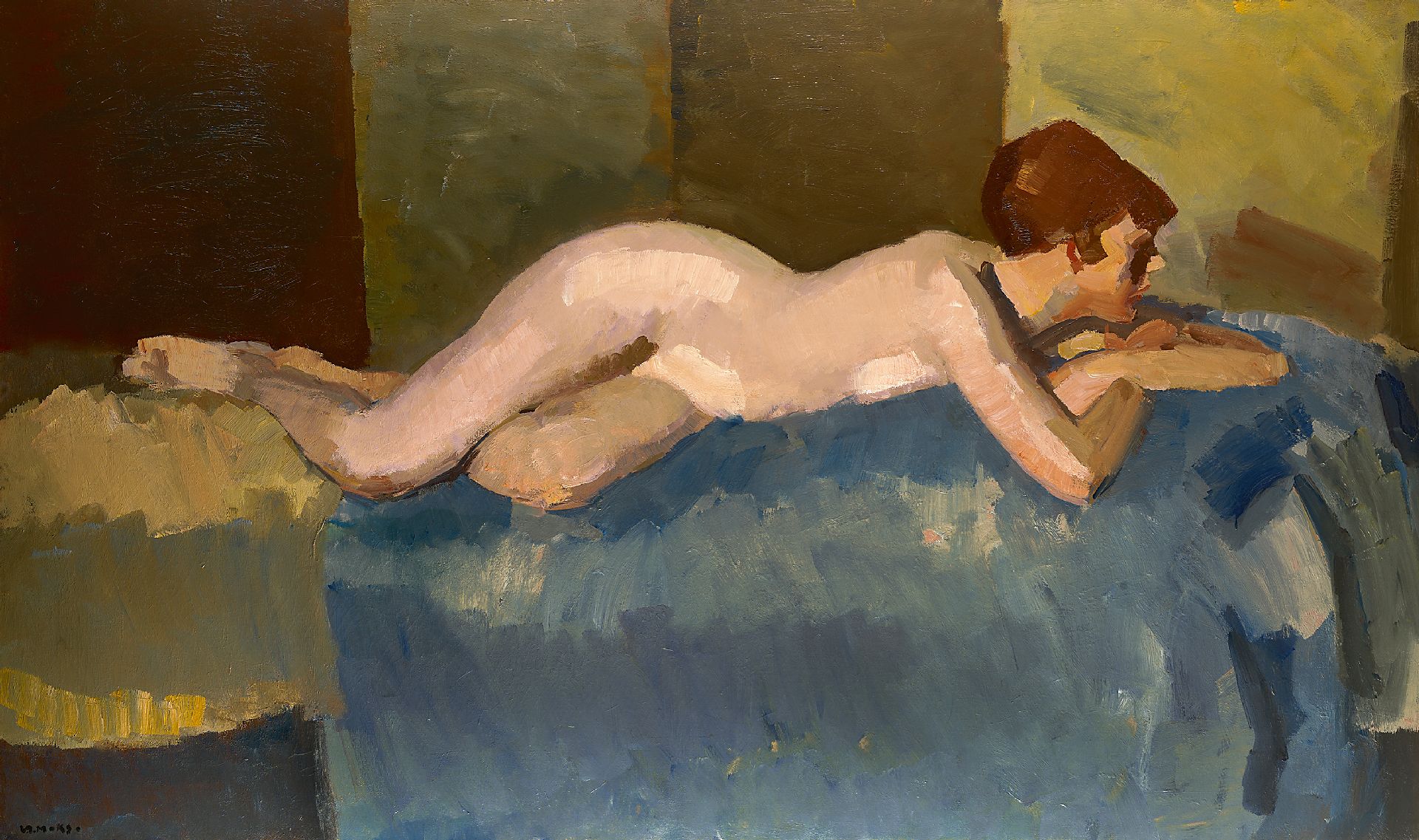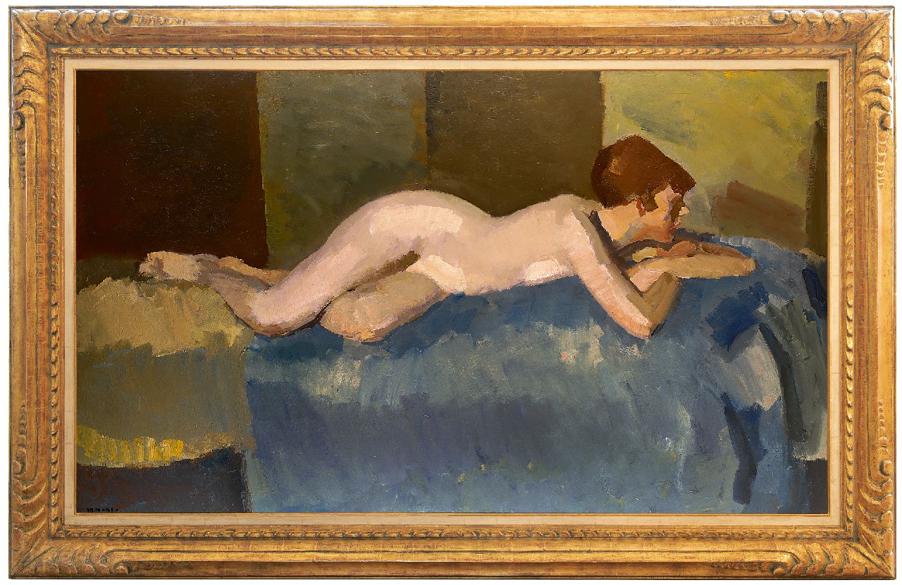 Kees Maks kunstwerk • schilderij • voorheen te koop Liggend naakt op sofa
