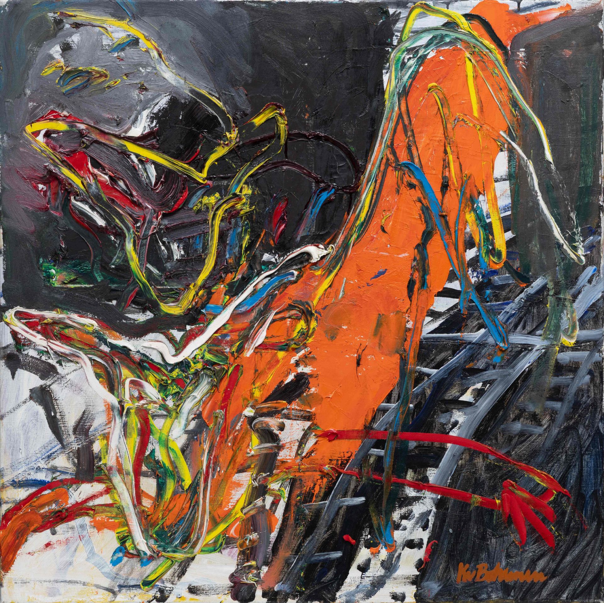 olieverf op doek 100,0 x 100,0 cm, gesigneerd rechtsonder