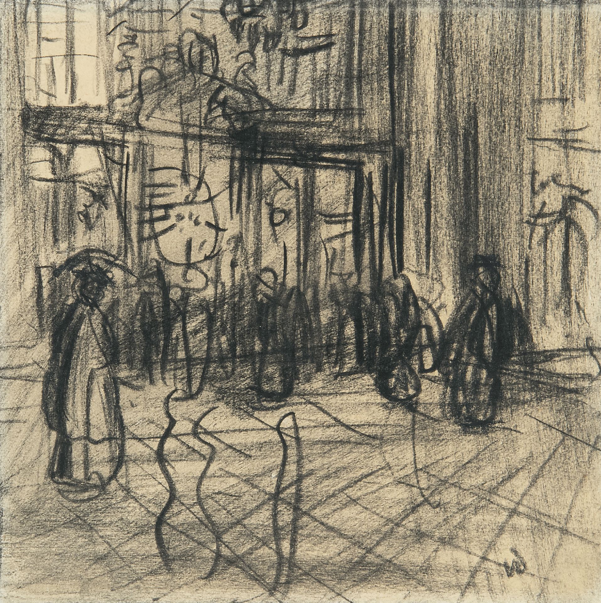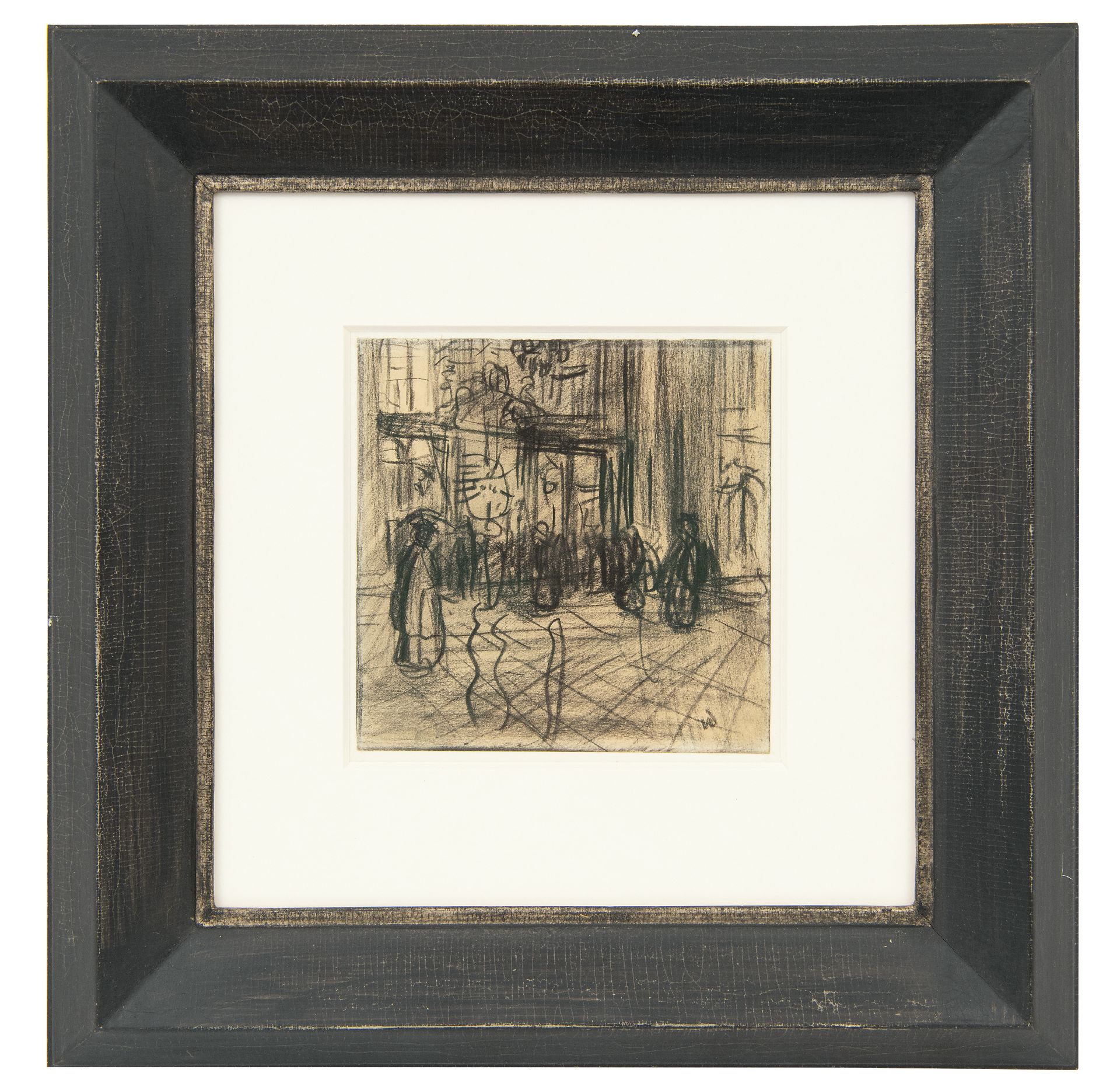 Kees van Dongen kunstwerk • aquarel • tekening • te koop Figuren in een winkelstraat i.o.