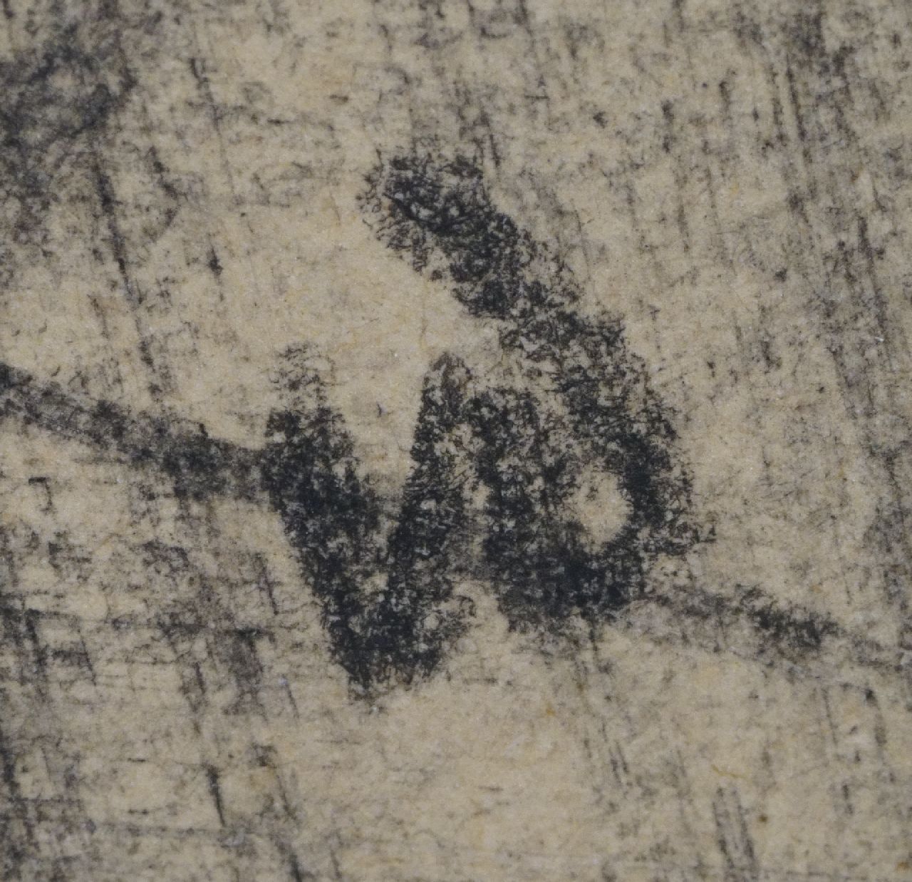 houtskool op papier 12,4 x 12,4 cm, gesigneerd rechtsonder met initialen