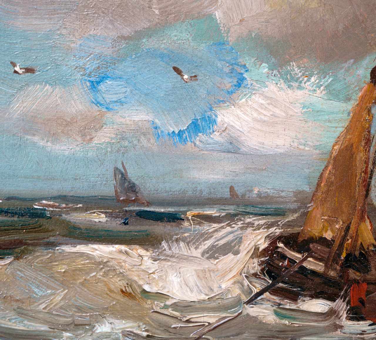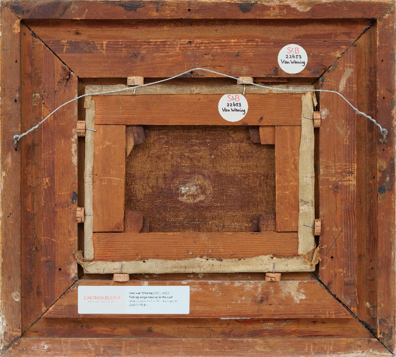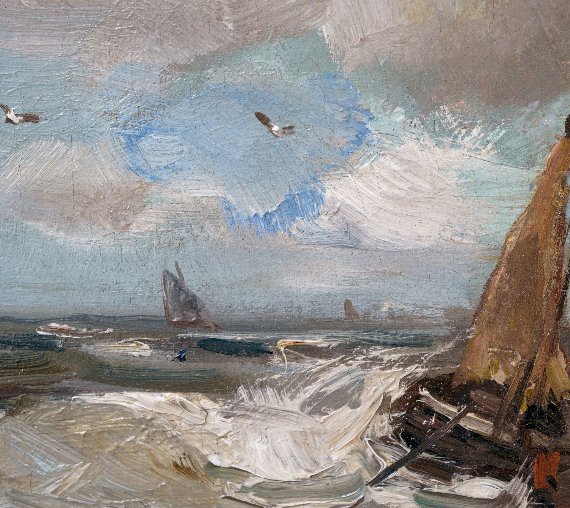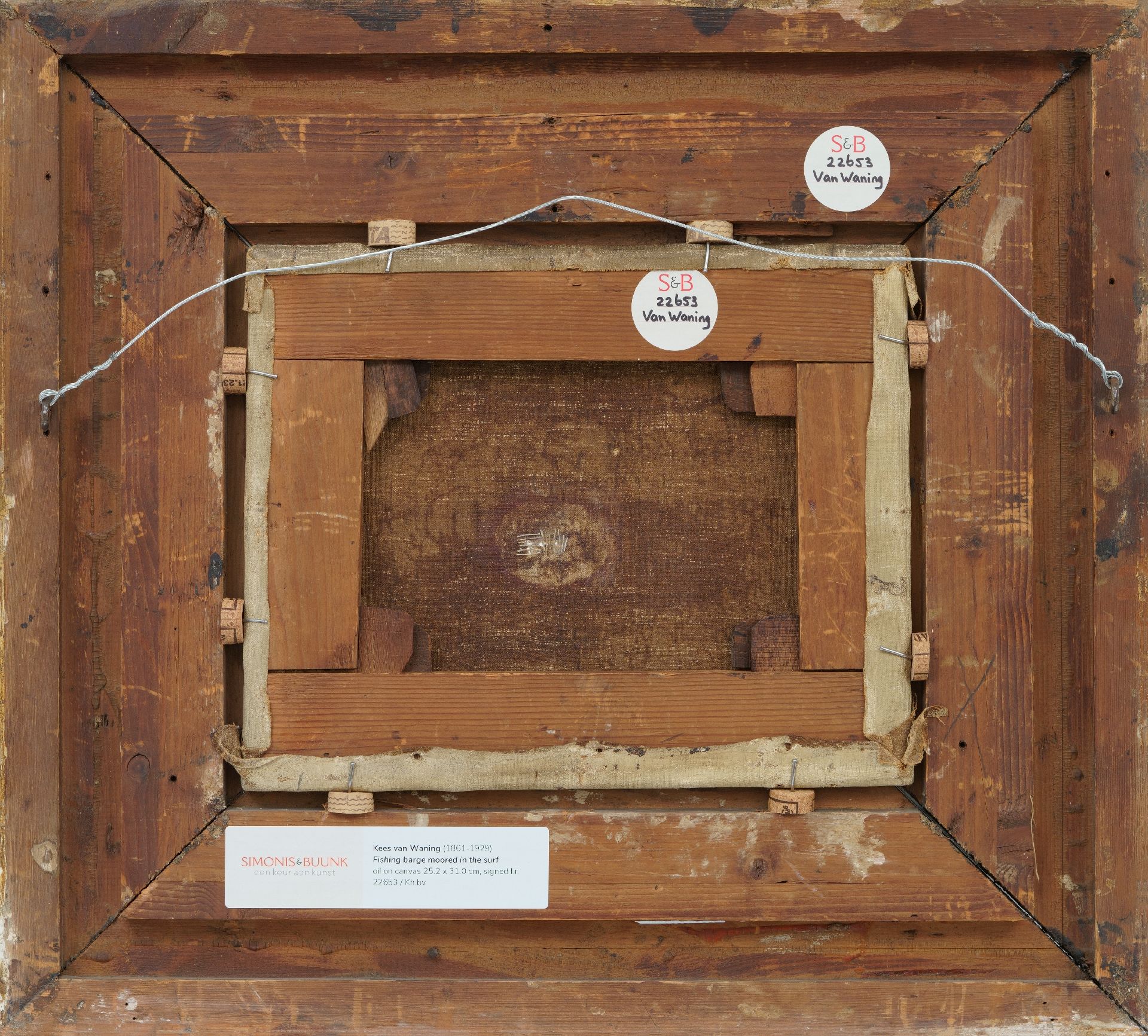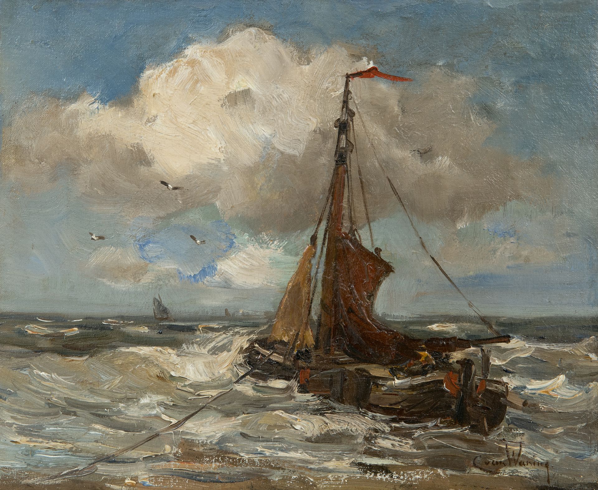 Kees van Waning kunstwerk • schilderij • te koop Bomschuit voor anker in de branding