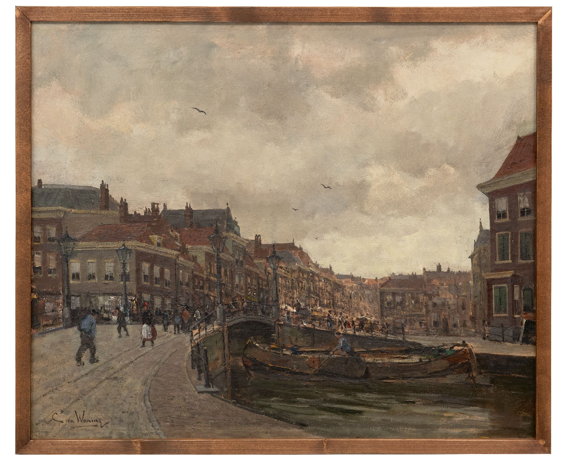 Kees van Waning kunstwerk • schilderij • te koop Gezicht op de Wagenbrug en de Wagenstraat, Den Haag