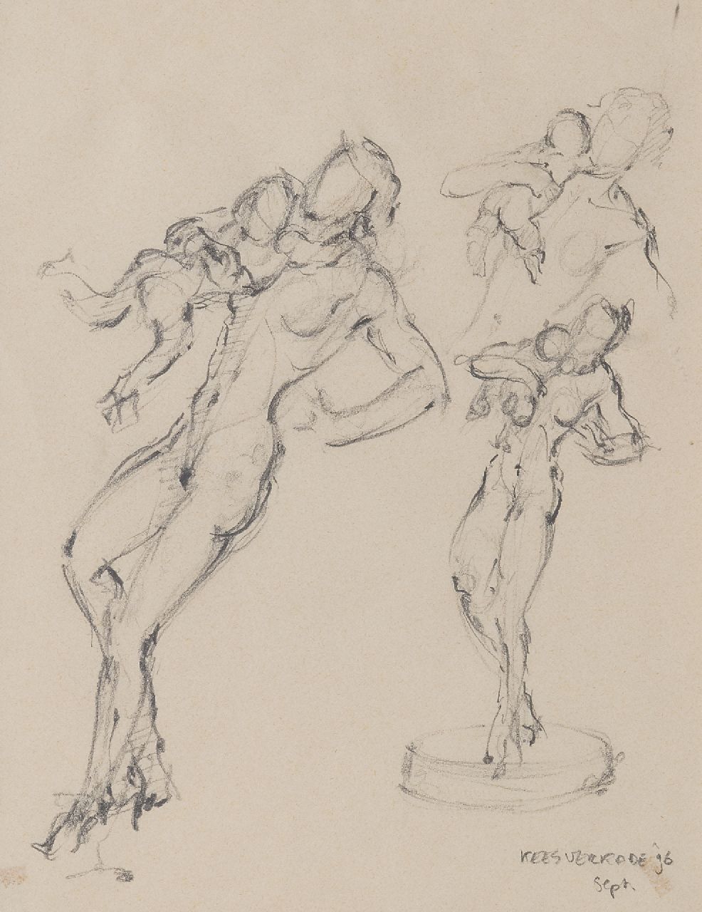 Kees Verkade kunstwerk • aquarel • tekening • te koop Studie voor beeld 'l'Elan'