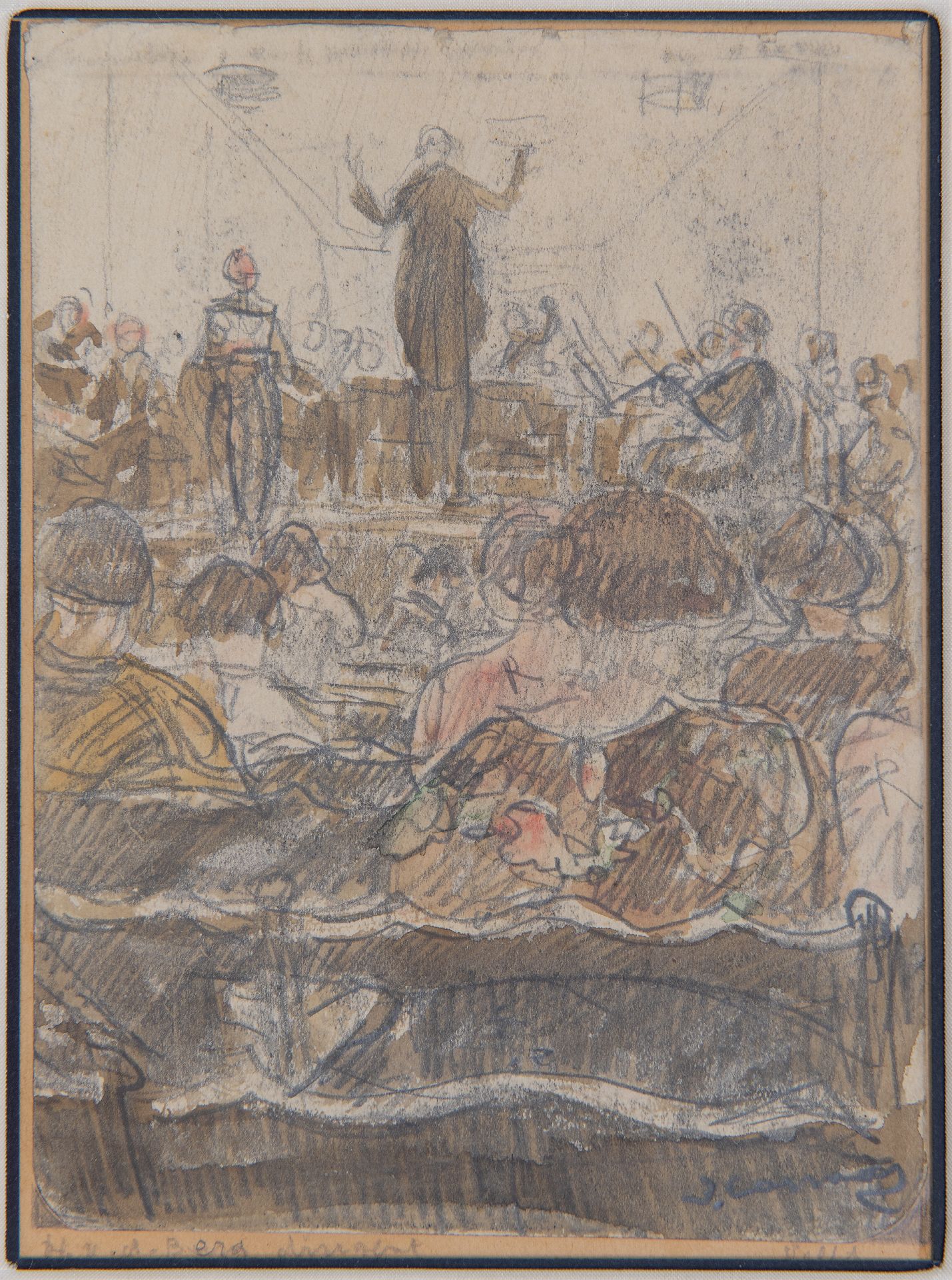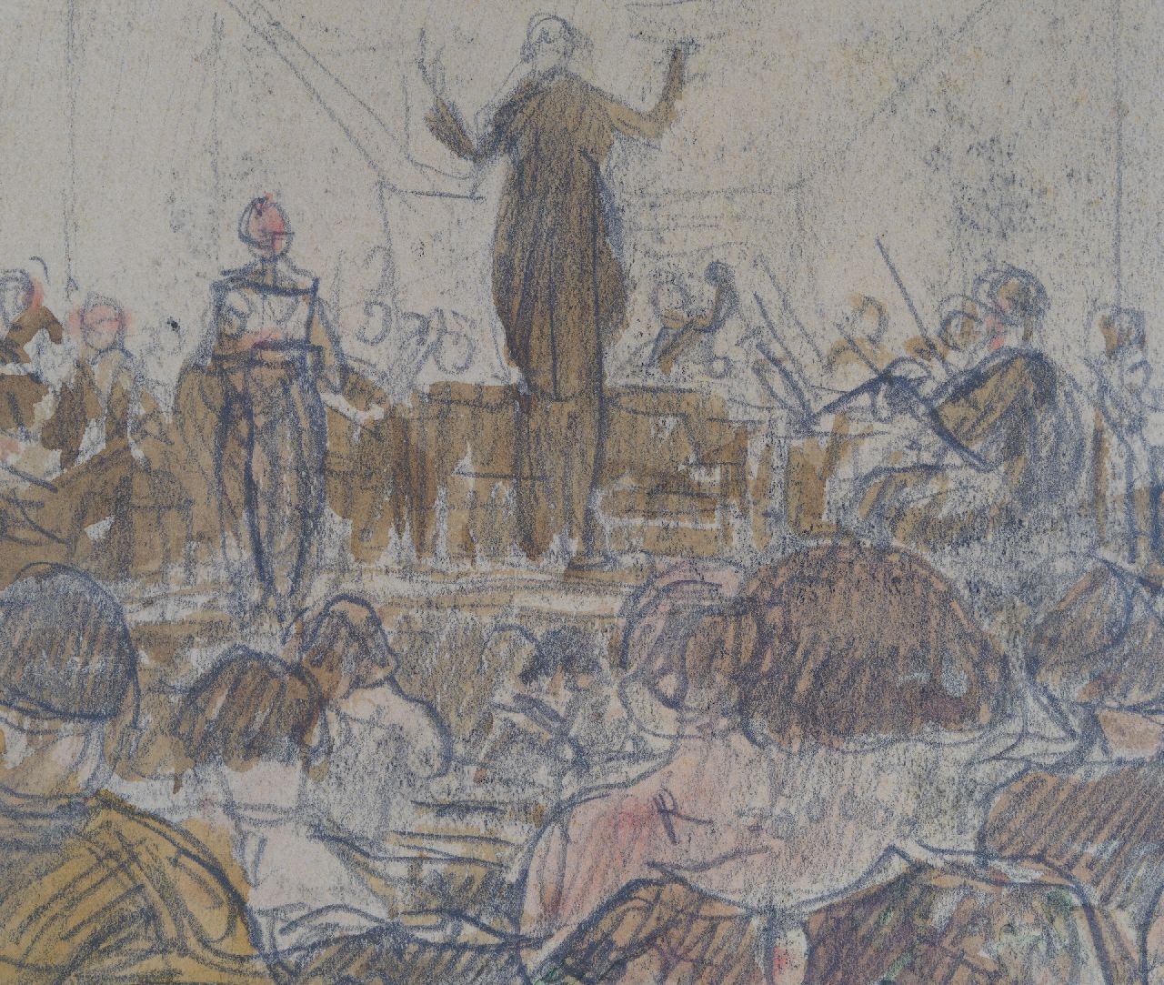 Ko Cossaar kunstwerk • aquarel • tekening • te koop Concert o.l.v. H. v.d. Berg, orkestdirigent te Delft