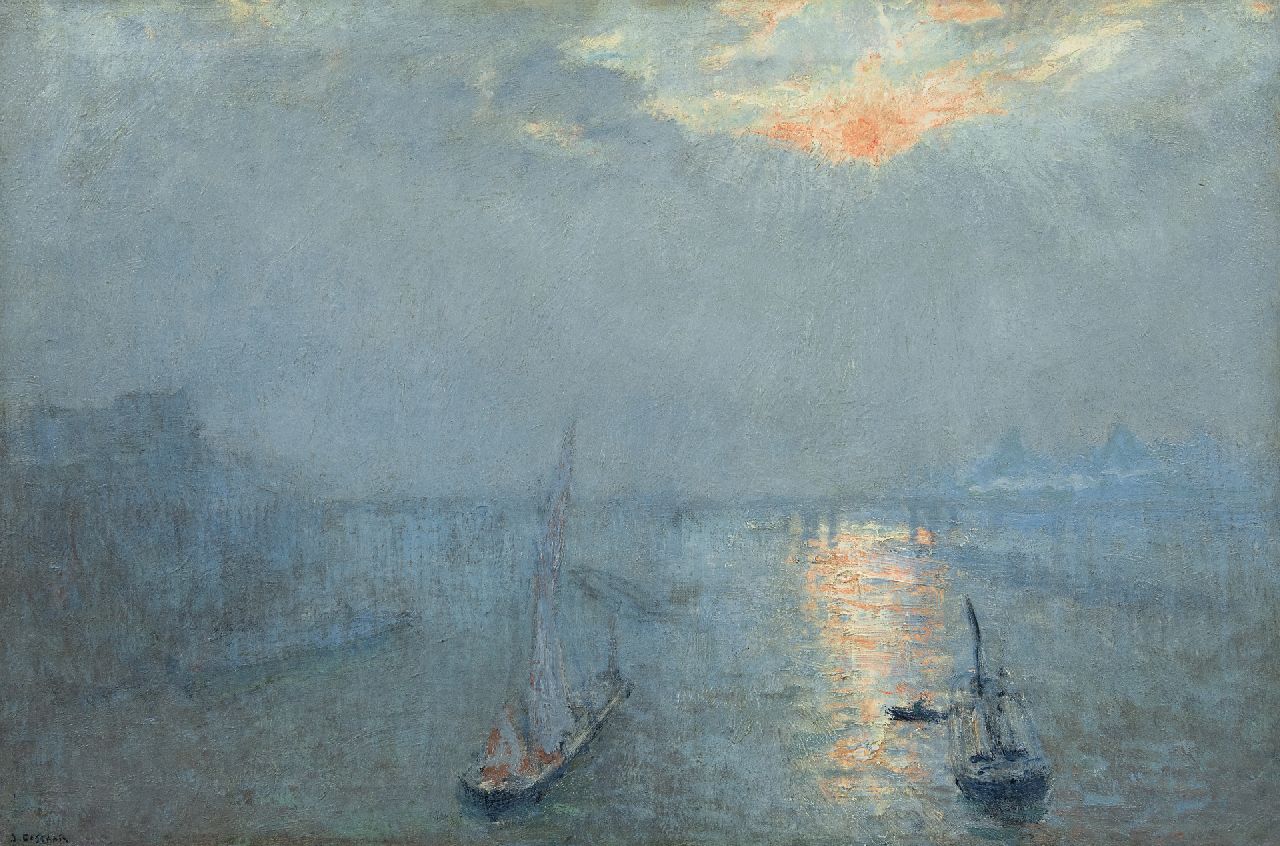 Ko Cossaar kunstwerk • schilderij • voorheen te koop De Thames in de nevel