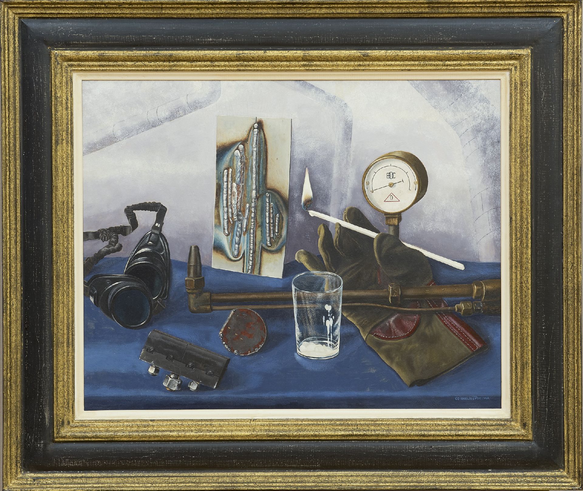 Postma C.J.  | Cornelis Johannes 'Kor' Postma | Schilderijen te koop aangeboden | Stilleven met lasattributen, olieverf op papier 38,0 x 47,9 cm, gesigneerd rechtsonder en te dateren ca. 1956