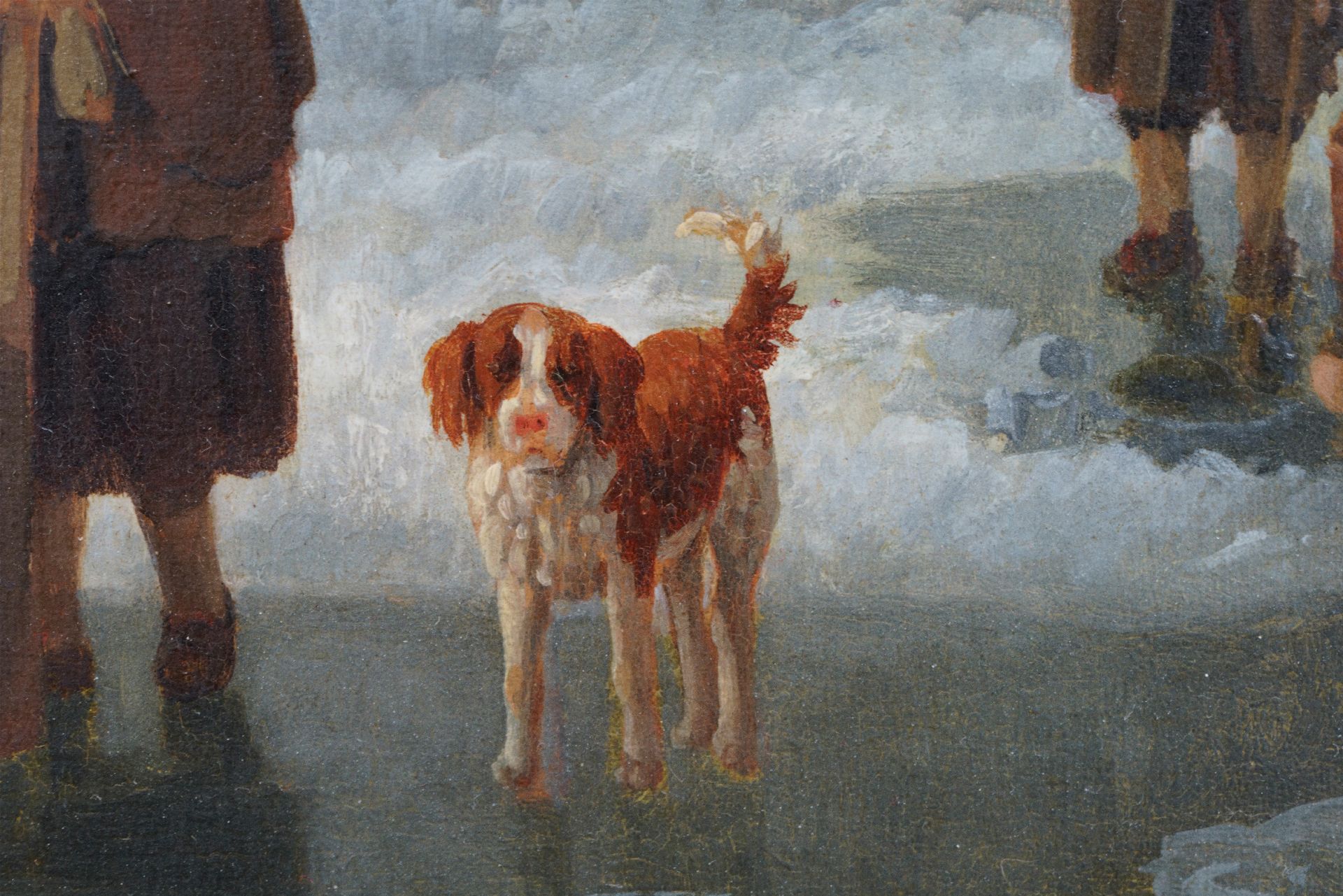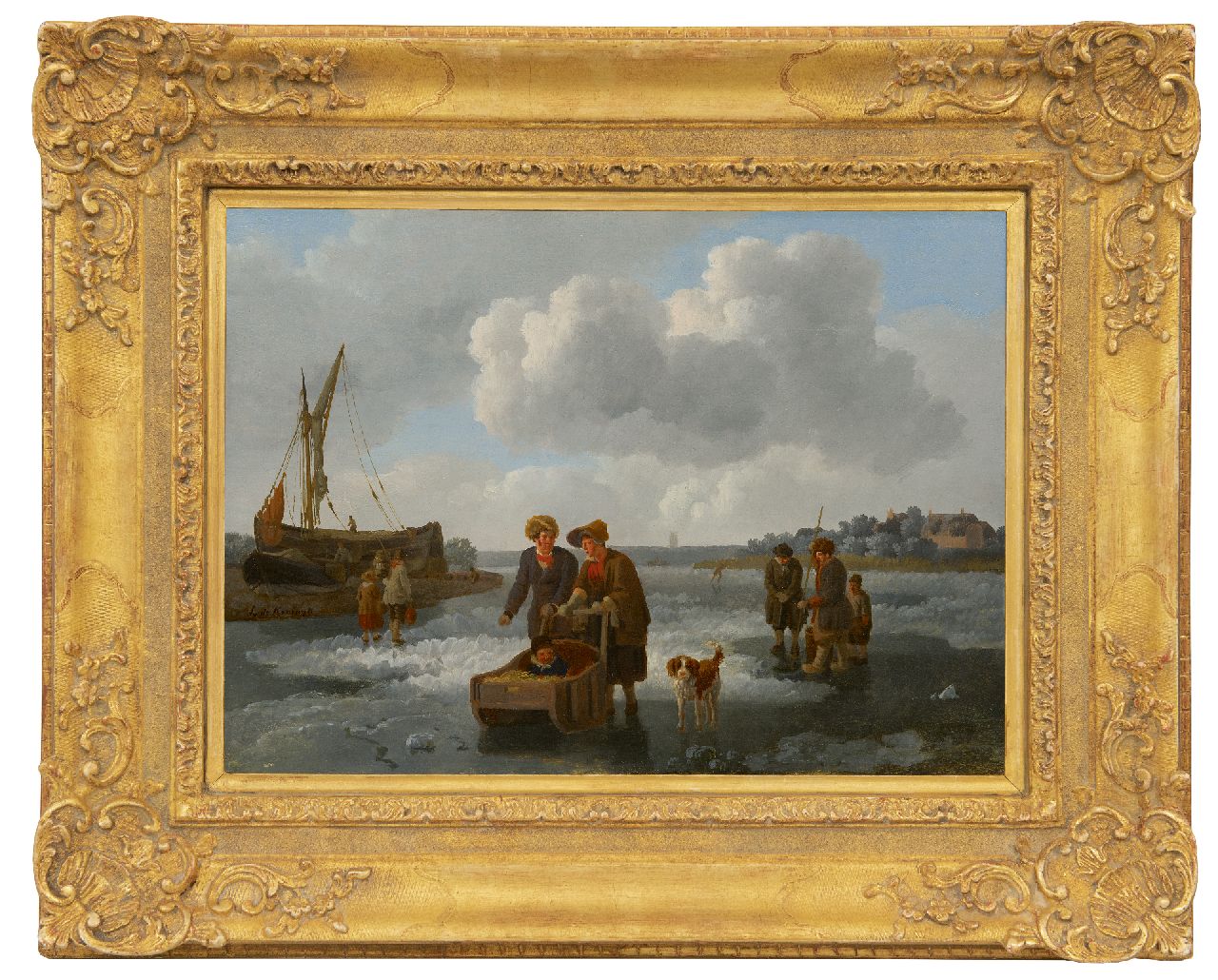 Leendert de Koningh kunstwerk • schilderij • voorheen te koop IJsvissers en slede op een bevroren rivier
