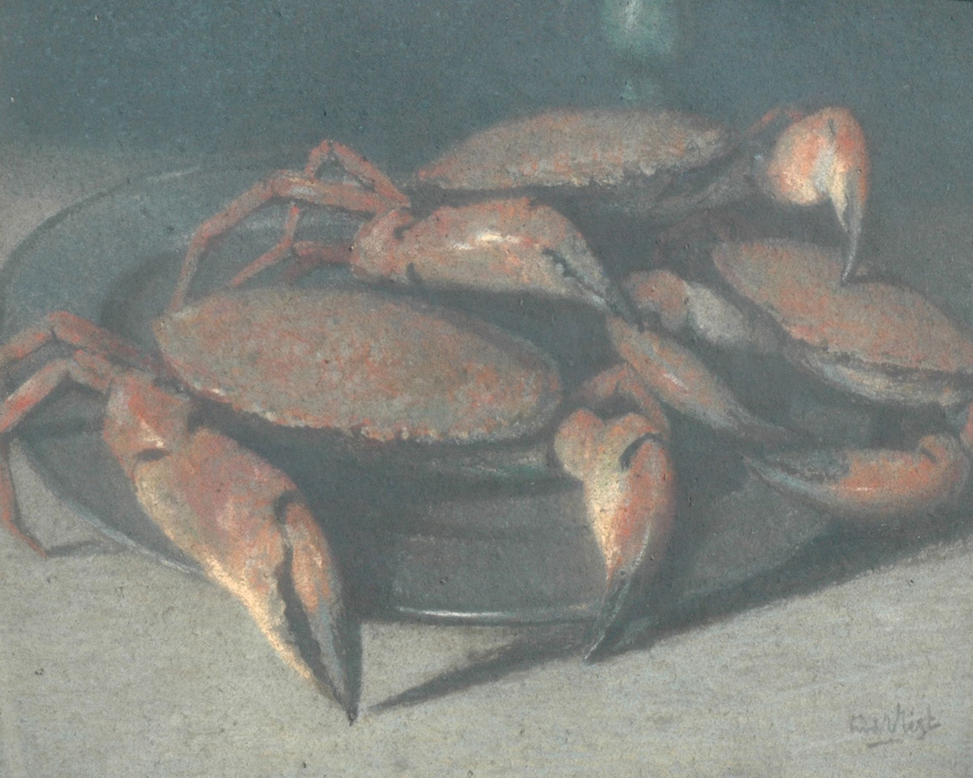 Leendert van der Vlist kunstwerk • aquarel • tekening • te koop Stilleven met krabben