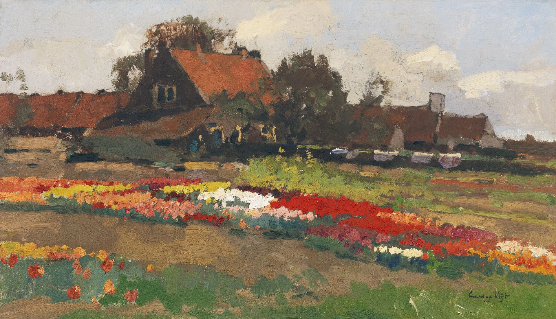 Leendert van der Vlist kunstwerk • schilderij • voorheen te koop Boerderij tussen tulpenvelden