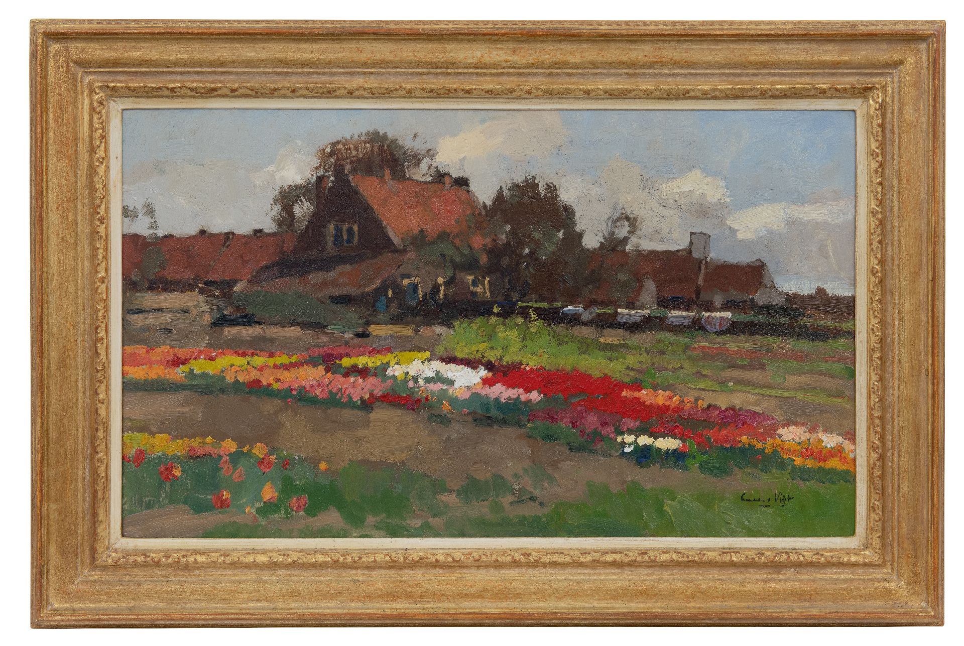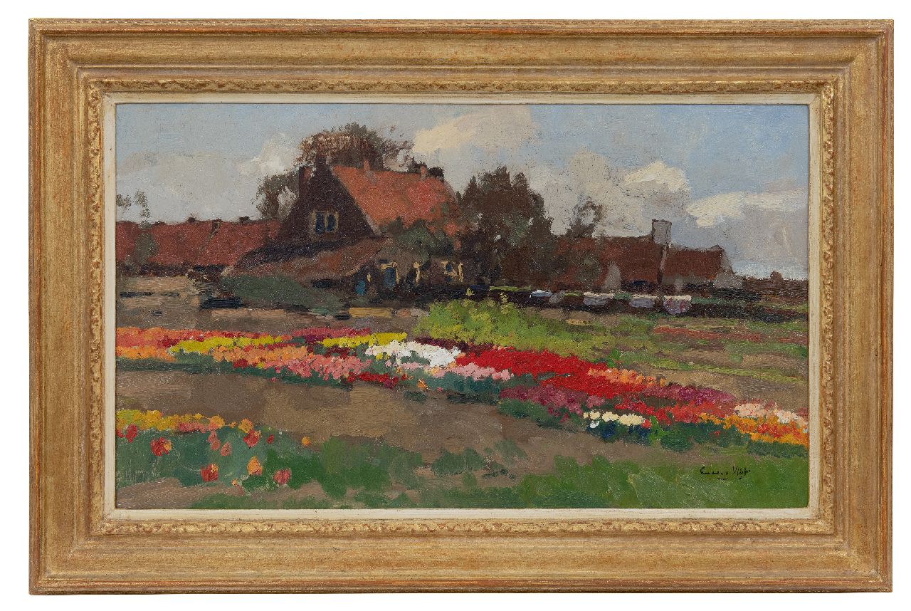 Leendert van der Vlist kunstwerk • schilderij • te koop Boerderij tussen tulpenvelden