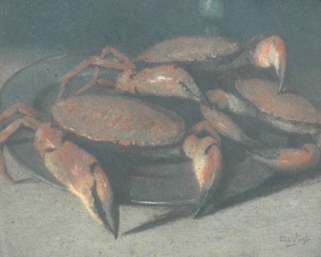 Leendert van der Vlist | Stilleven met krabben, pastel op papier, 68,0 x 83,0 cm, gesigneerd r.o.
