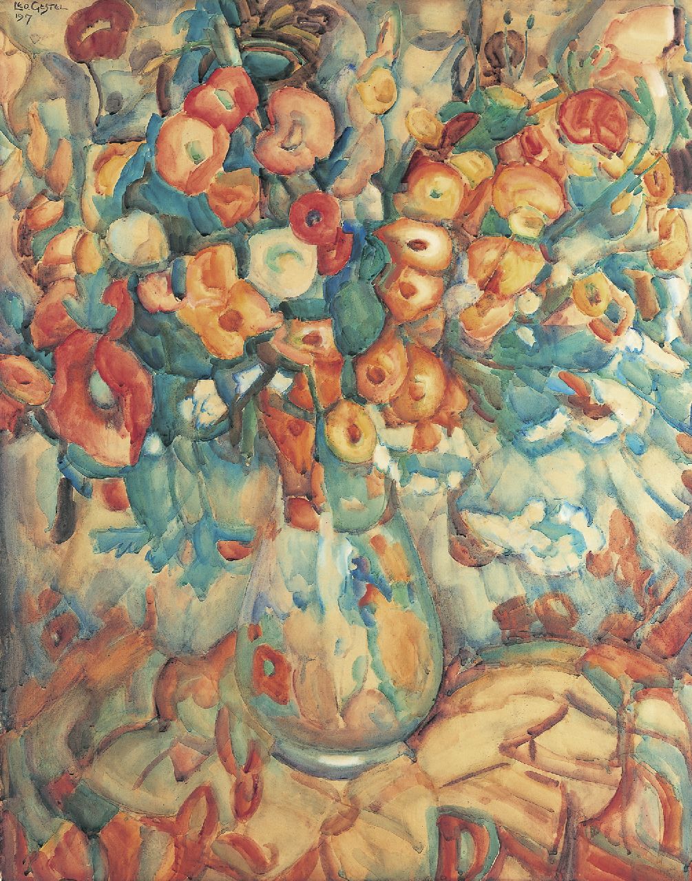 Leo Gestel kunstwerk • aquarel • tekening • voorheen te koop Bloemen