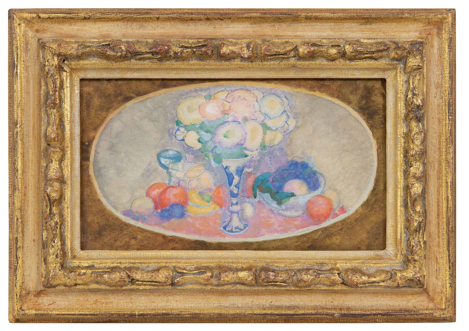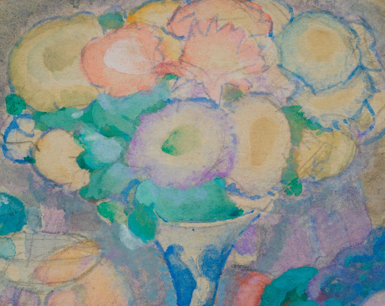 Leo Gestel kunstwerk • aquarel • tekening • te koop Medaillon met bloemstilleven (alleen tezamen met pendant)