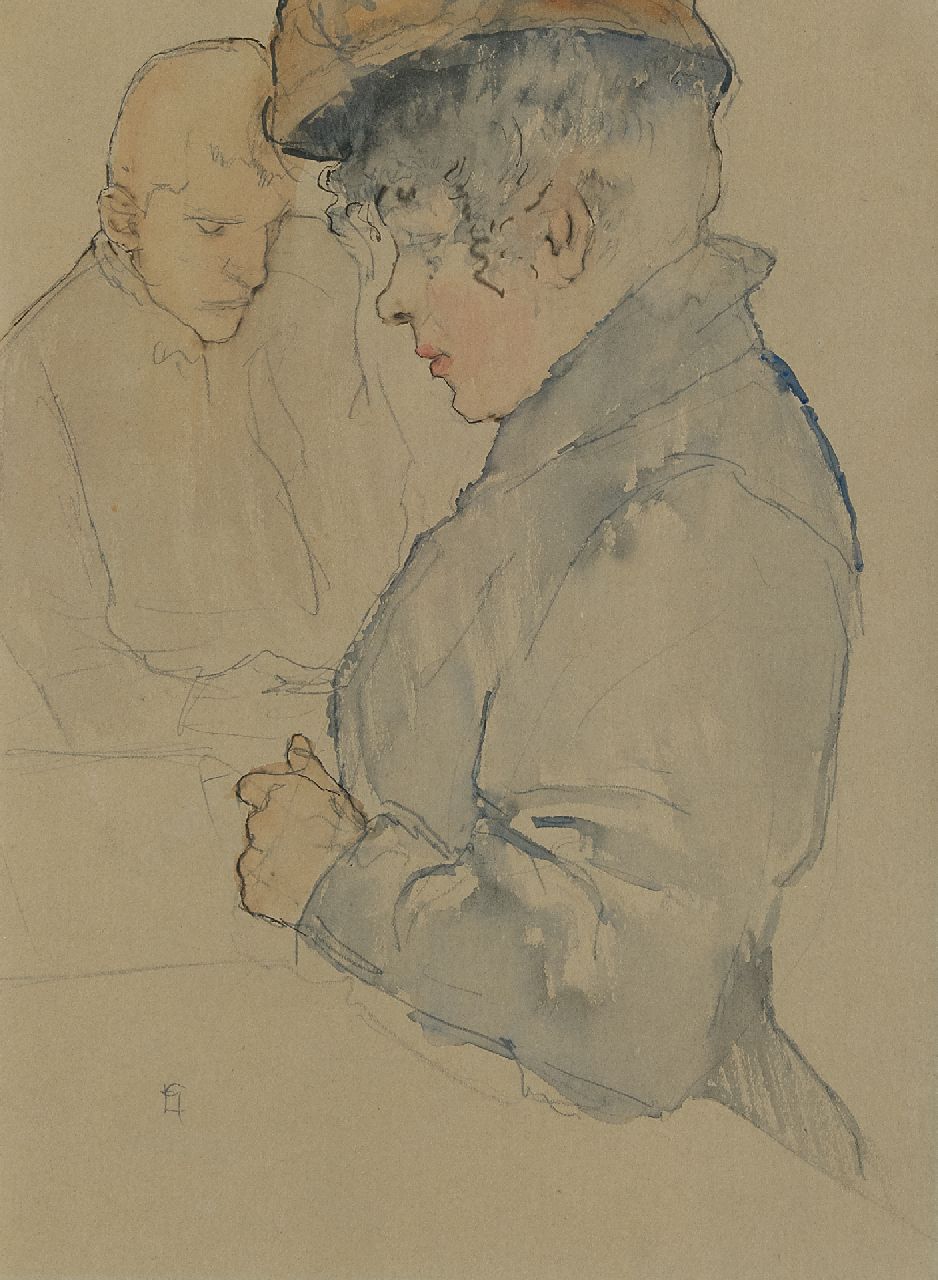 potlood, pen, inkt en aquarel op papier 30,7 x 22,5 cm, gesigneerd linksonder met monogram