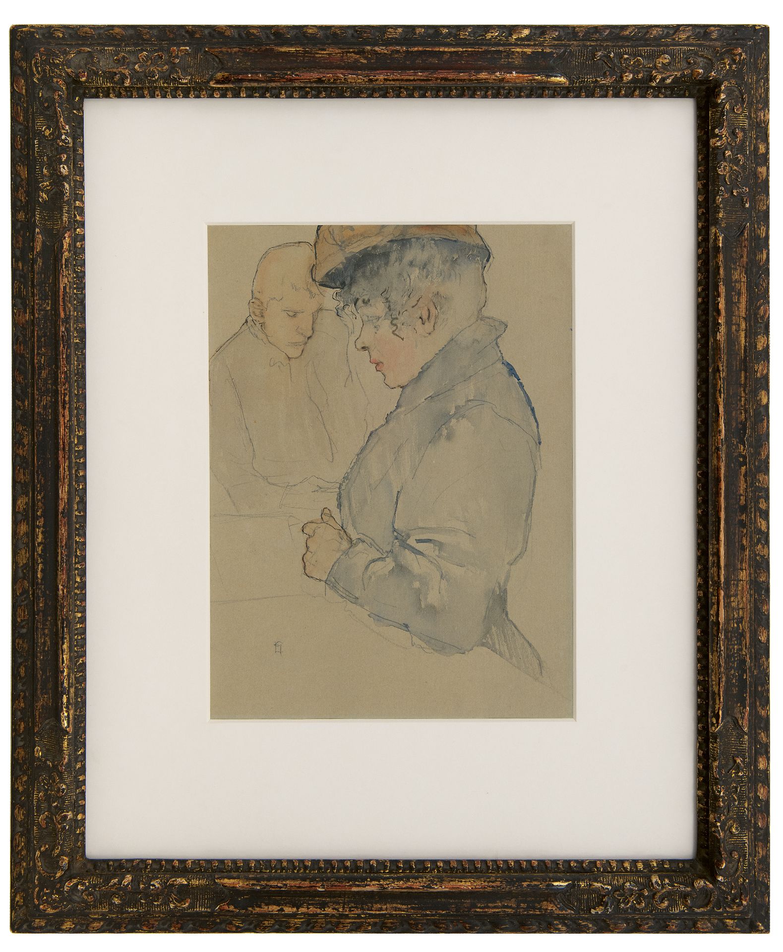 Leo Gestel kunstwerk • aquarel • tekening • voorheen te koop Vrouw en man in een café
