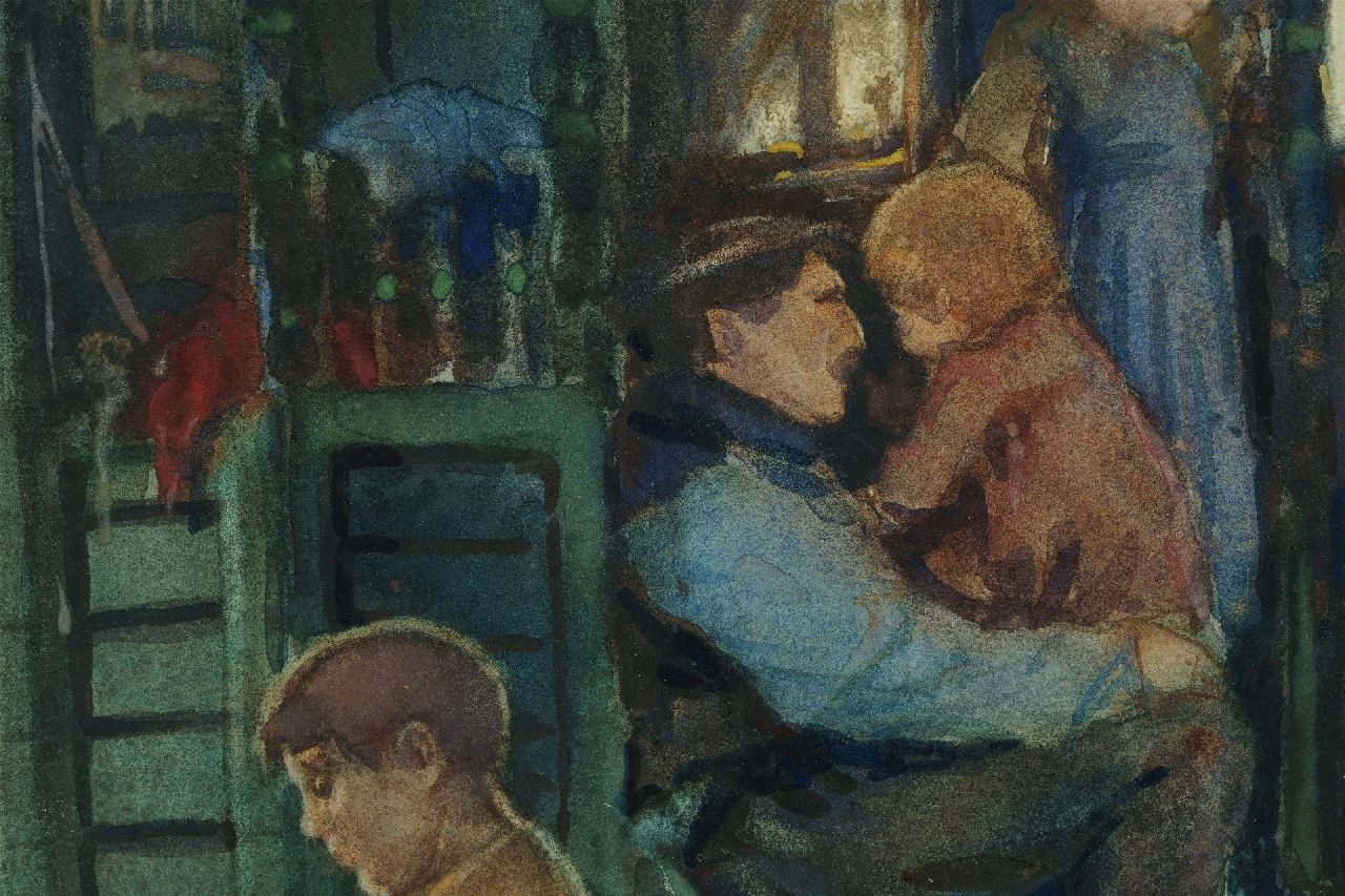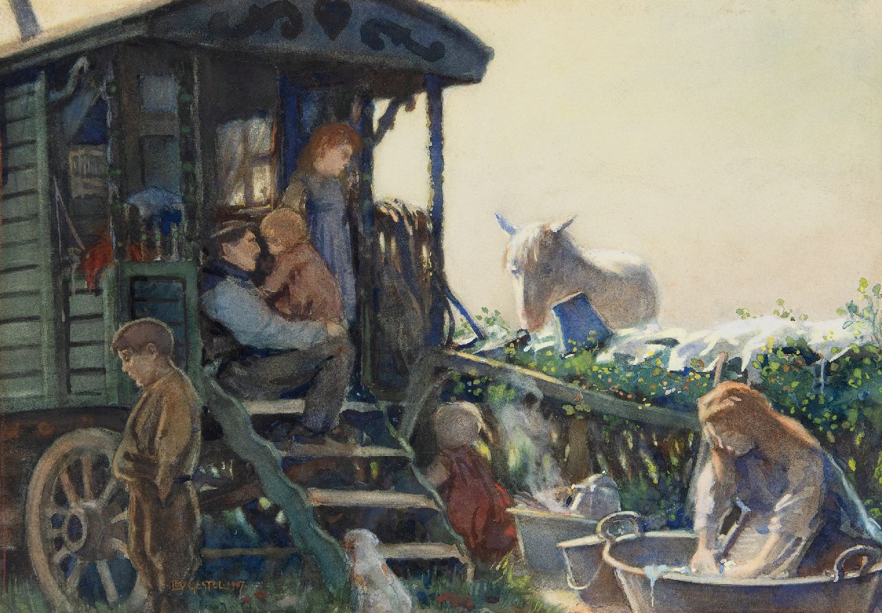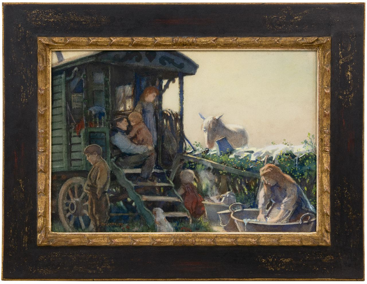 Leo Gestel kunstwerk • aquarel • tekening • te koop Woonwagenfamilie