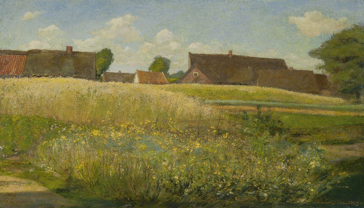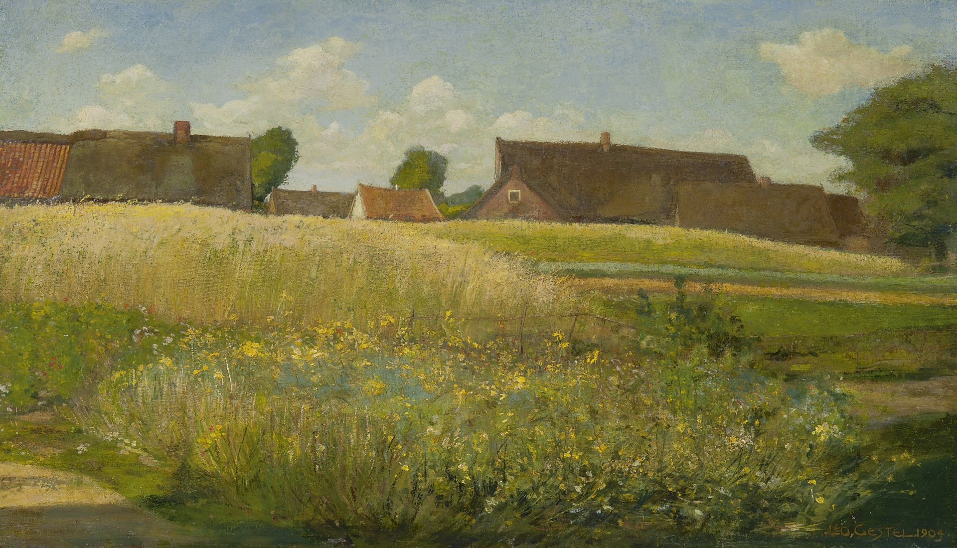 Leo Gestel kunstwerk • schilderij • voorheen te koop Boerderijen langs het korenveld