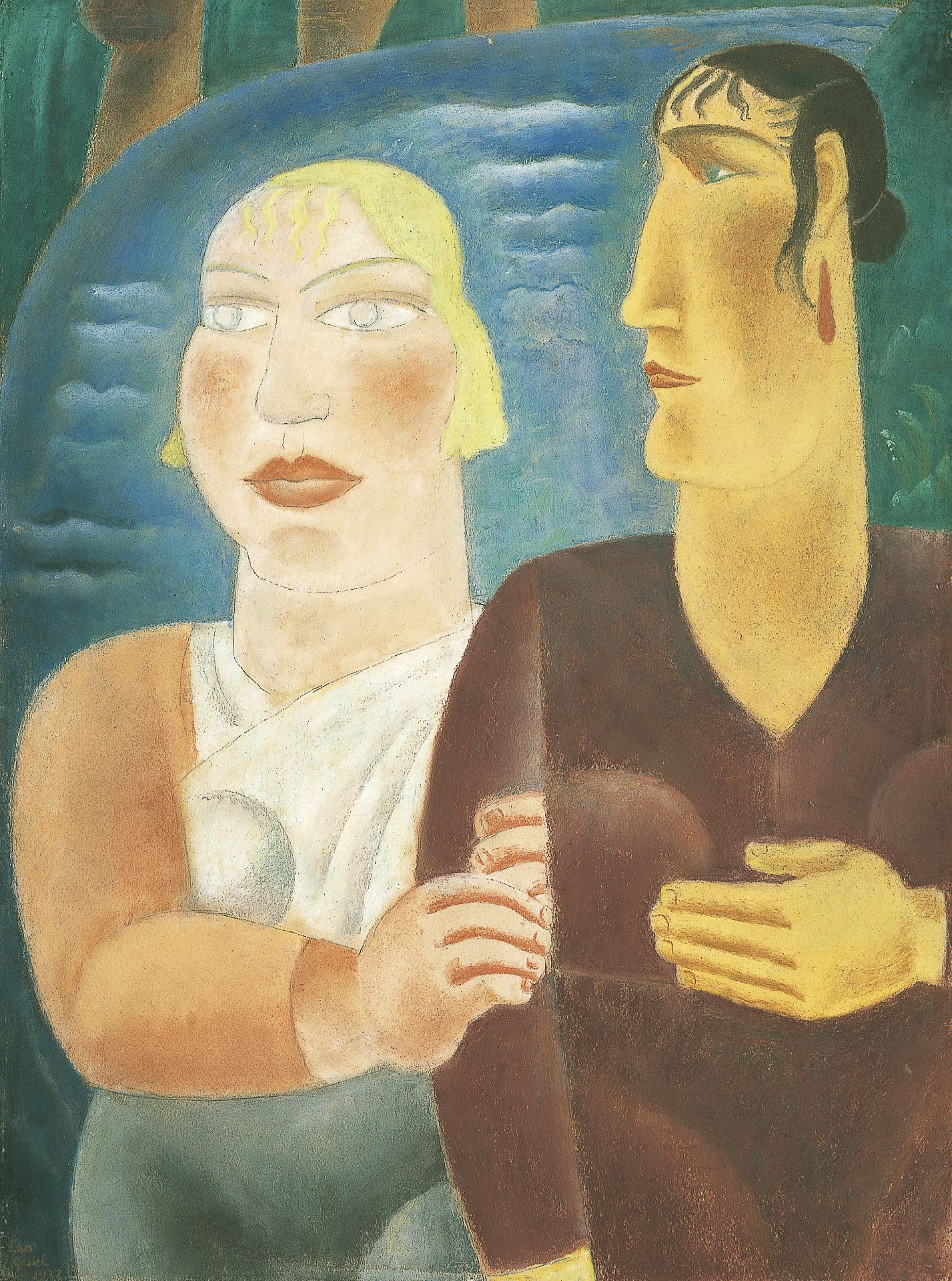 Leo Gestel kunstwerk • aquarel • tekening • voorheen te koop De vriendinnen; verso potloodschets van paard en stier