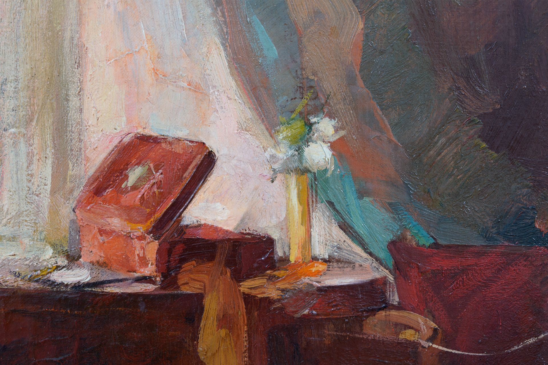 Leo Gestel kunstwerk • schilderij • te koop Interieur met Anna, de zus van Leo Gestel