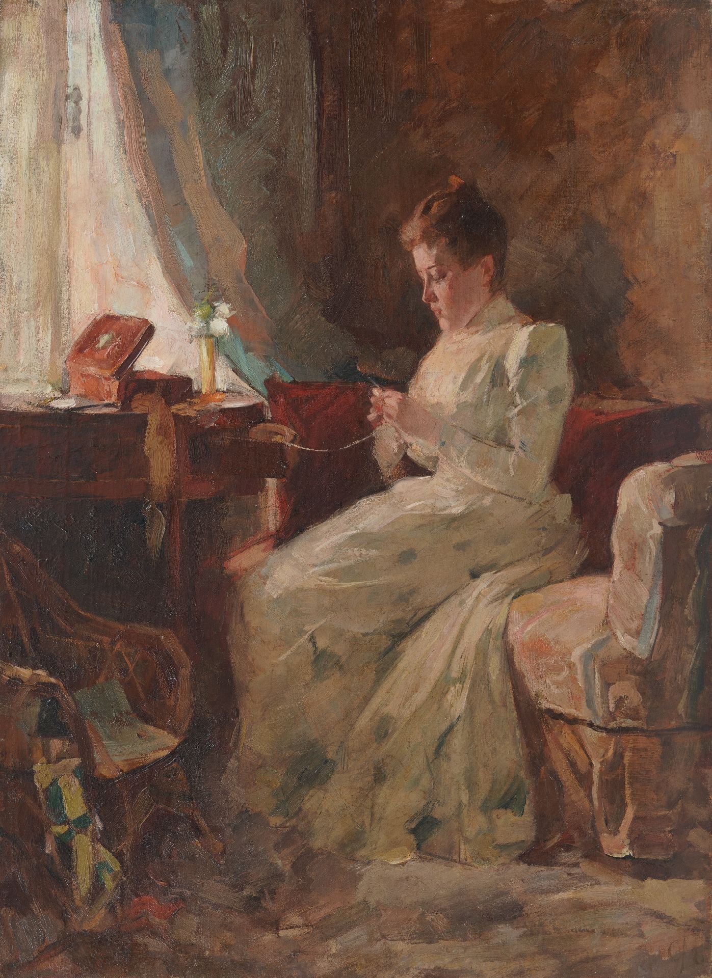 Interieur met Anna, de zus van Leo Gestel