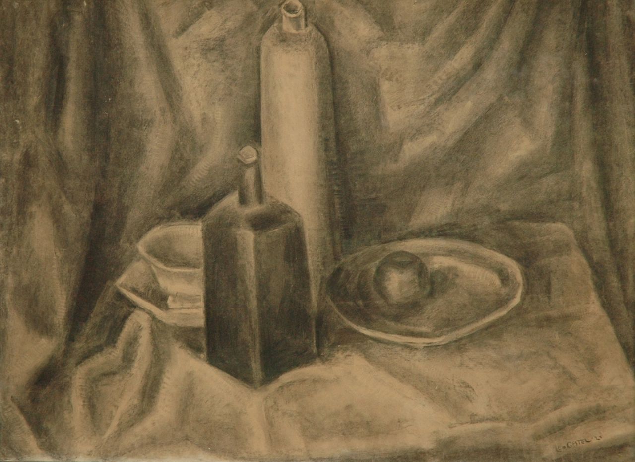 Leo Gestel kunstwerk • aquarel • tekening • voorheen te koop Kruiken, kop en schotel en fruitschaal