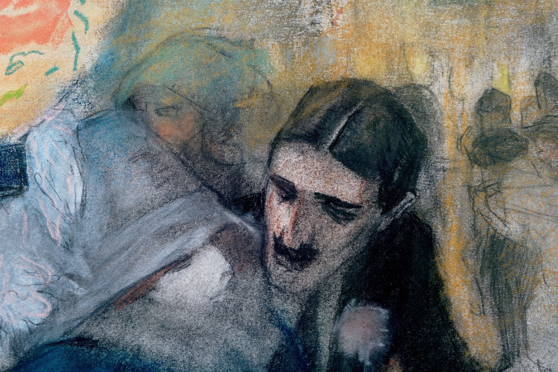 zwart krijt en pastel op papier 41,5 x 52,0 cm, gesigneerd rechtsonder en te dateren ca. 1910-1911