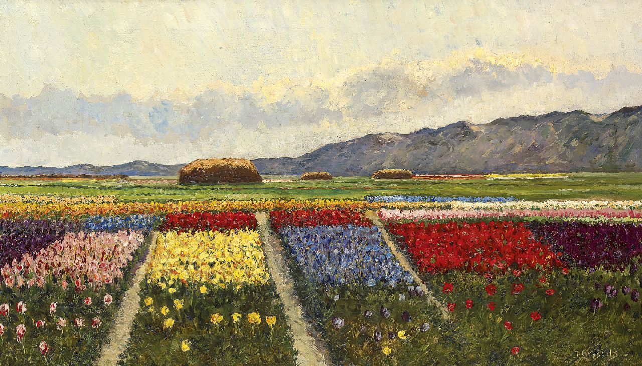 Leo Grijseels kunstwerk • schilderij • voorheen te koop Bollenvelden achter de duinen