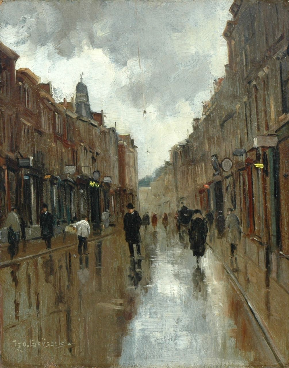 Leo Grijseels kunstwerk • schilderij • voorheen te koop De Tweede Wagenstraat, Den Haag, bij regenachtig weer