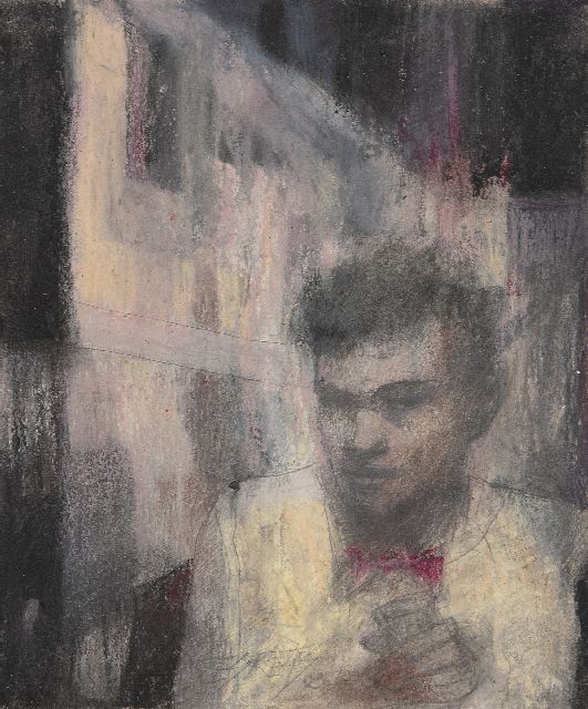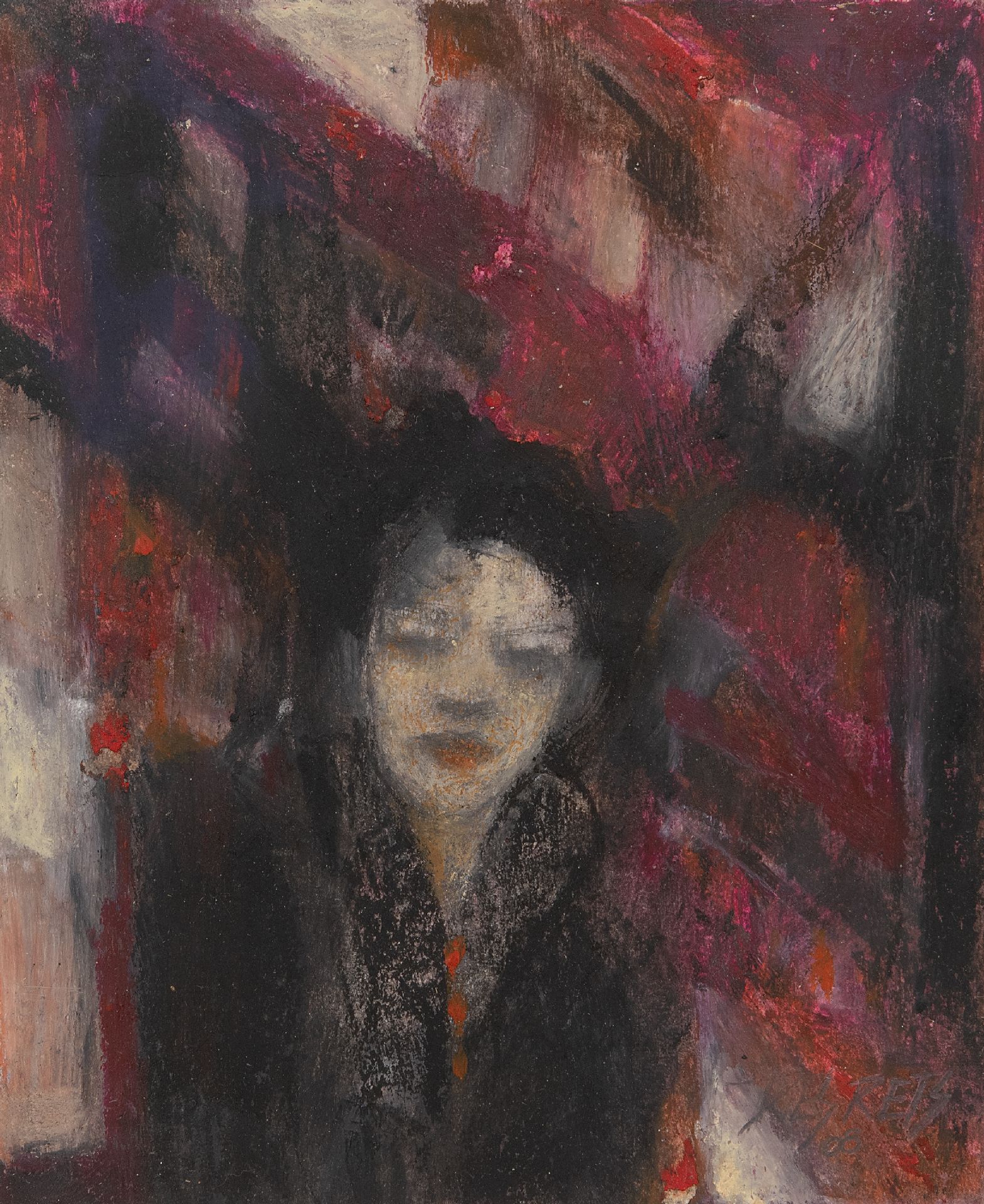 oliepastel op papier 16,7 x 13,7 cm, gesigneerd rechtsonder en verso op etiket en gedateerd '08 en verso op etiket 2009