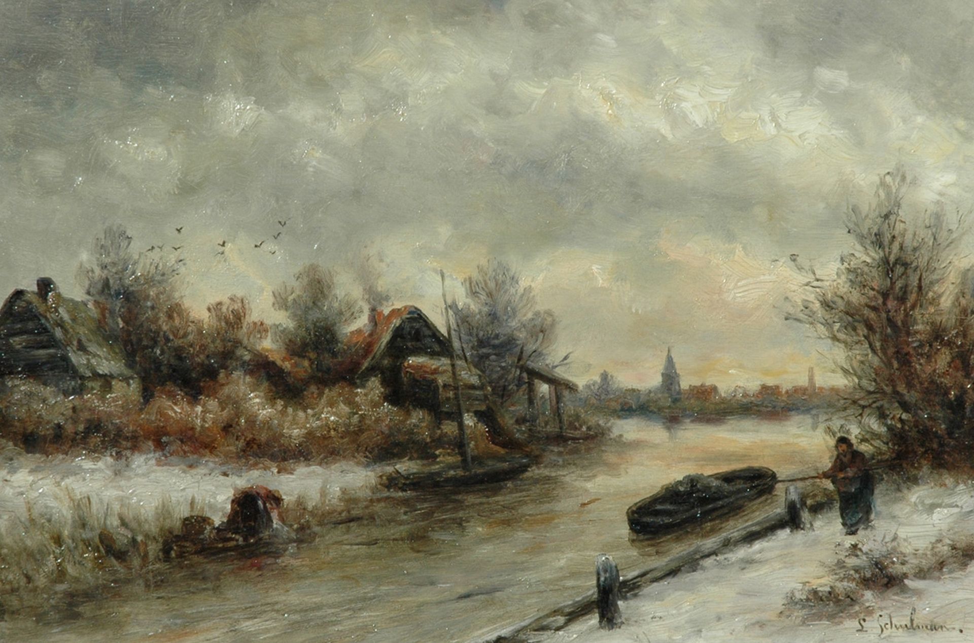Lion Schulman kunstwerk • schilderij • voorheen te koop Winterlandschap nabij Loosdrecht