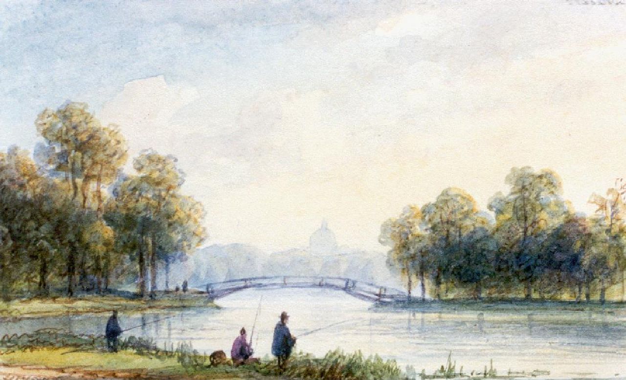 Lodewijk Johannes Kleijn kunstwerk • aquarel • tekening • voorheen te koop Gezicht op de parkvijver van paleis Huis ten Bosch, Den Haag