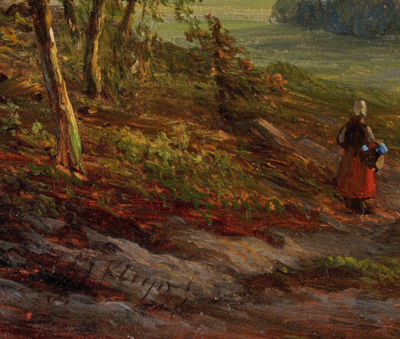 Als leerling van Andreas Schelfhout schilderde L.J. Kleijn veel winterlandschappen met schaatsende en sleeënde figuurtjes op spiegelend ijs. Daarnaast maakte hij zomerse rivier- en strandgezichten en panoramische landschappen, waarin hij de kalme sfeer en het warme licht van een zomerdag weet te treffen. Rond 1840 verbleef Kleijn enige tijd in het Duitse Kleef. Niet bekend is of hij daar naartoe ging voor B.C. Koekkoek: er zijn geen concrete aanwijzingen dat Kleijn les heeft gehad aan diens tekenacademie. Van Kleijns Kleefse periode getuigen een aantal schilderijen met stadsmotieven of de omgeving van Kleef als onderwerp. Vermoedelijk bereisde hij ook het Rijndal bij het Zevengebergte.