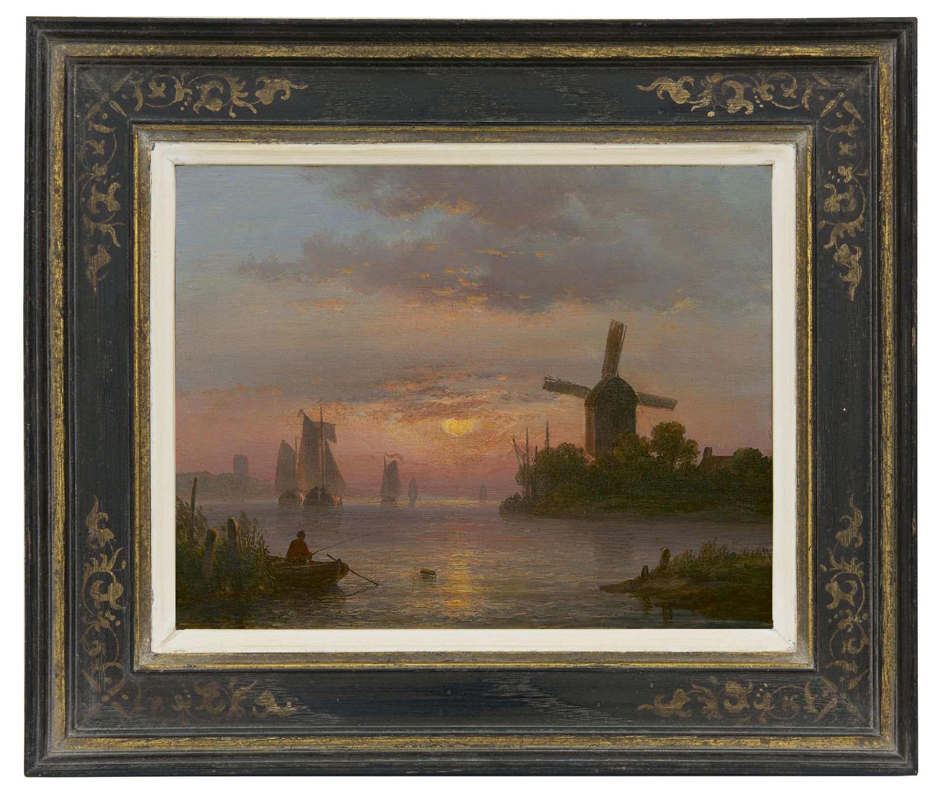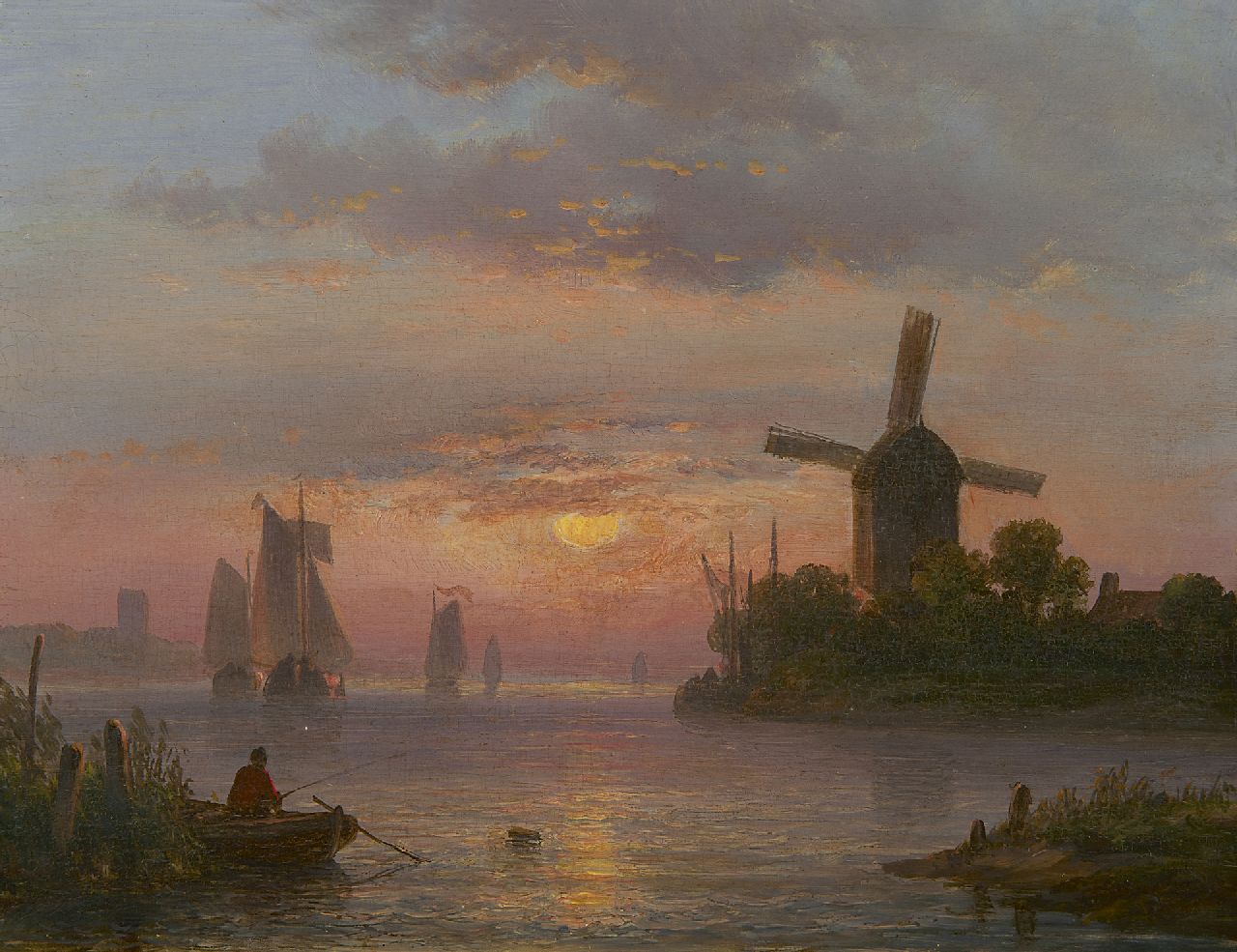 Lodewijk Johannes Kleijn kunstwerk • schilderij • voorheen te koop Hollands riviergezicht bij zonsondergang
