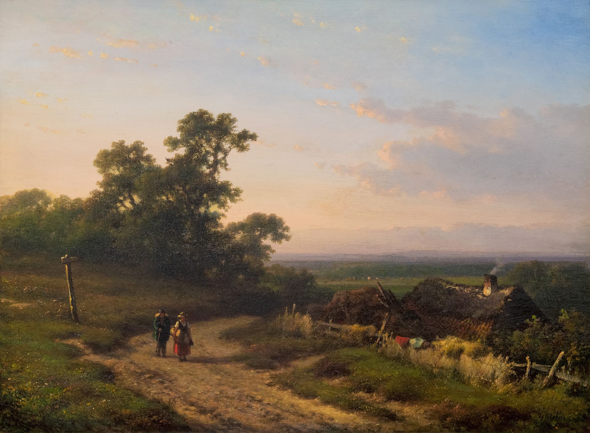 Lodewijk Johannes Kleijn kunstwerk • schilderij • voorheen te koop Panoramisch zomerlandschap met boerenvolk (alleen tezamen met 9792)