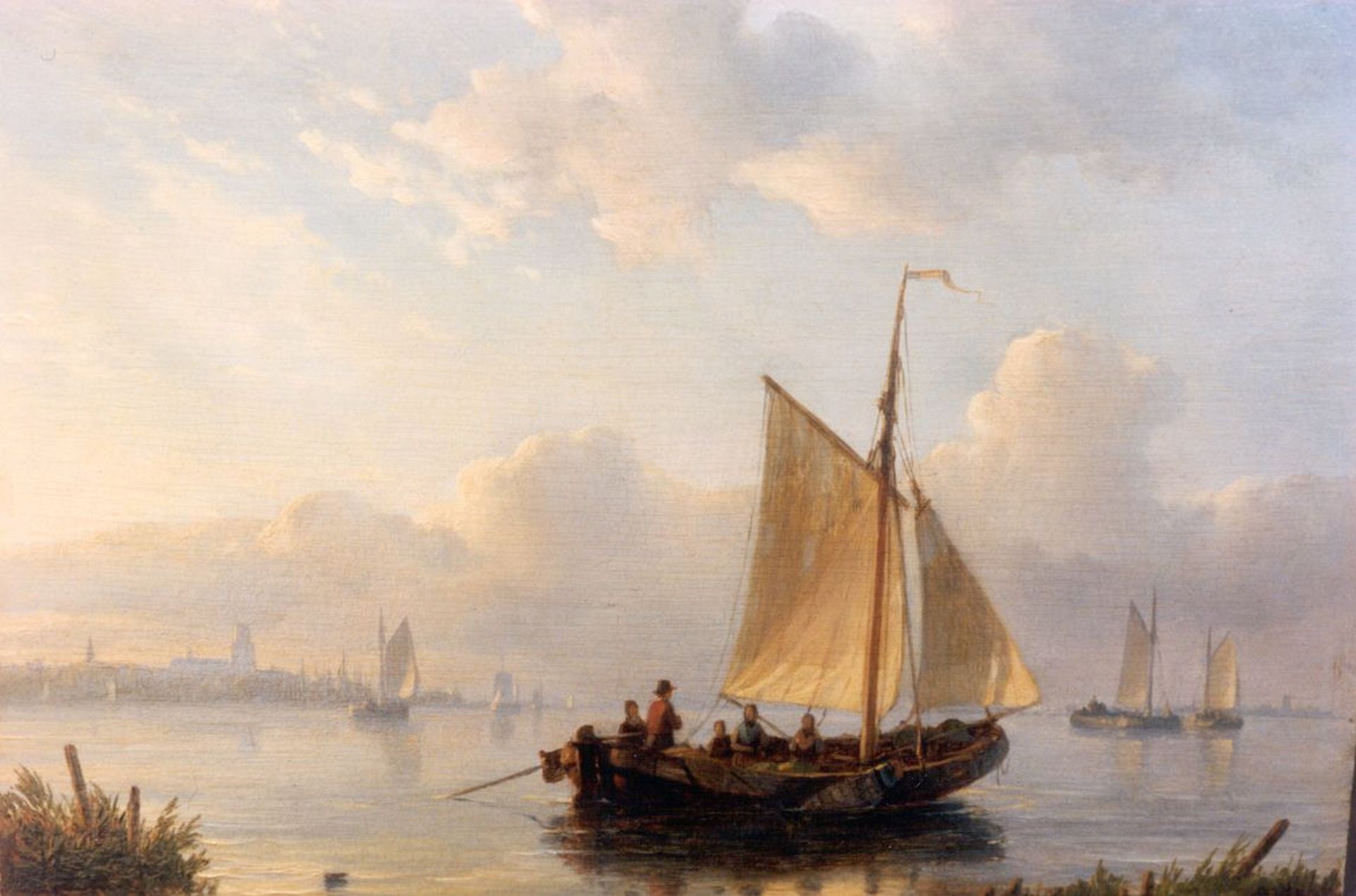 Lodewijk Johannes Kleijn kunstwerk • schilderij • voorheen te koop Riviergezicht met zeilboten