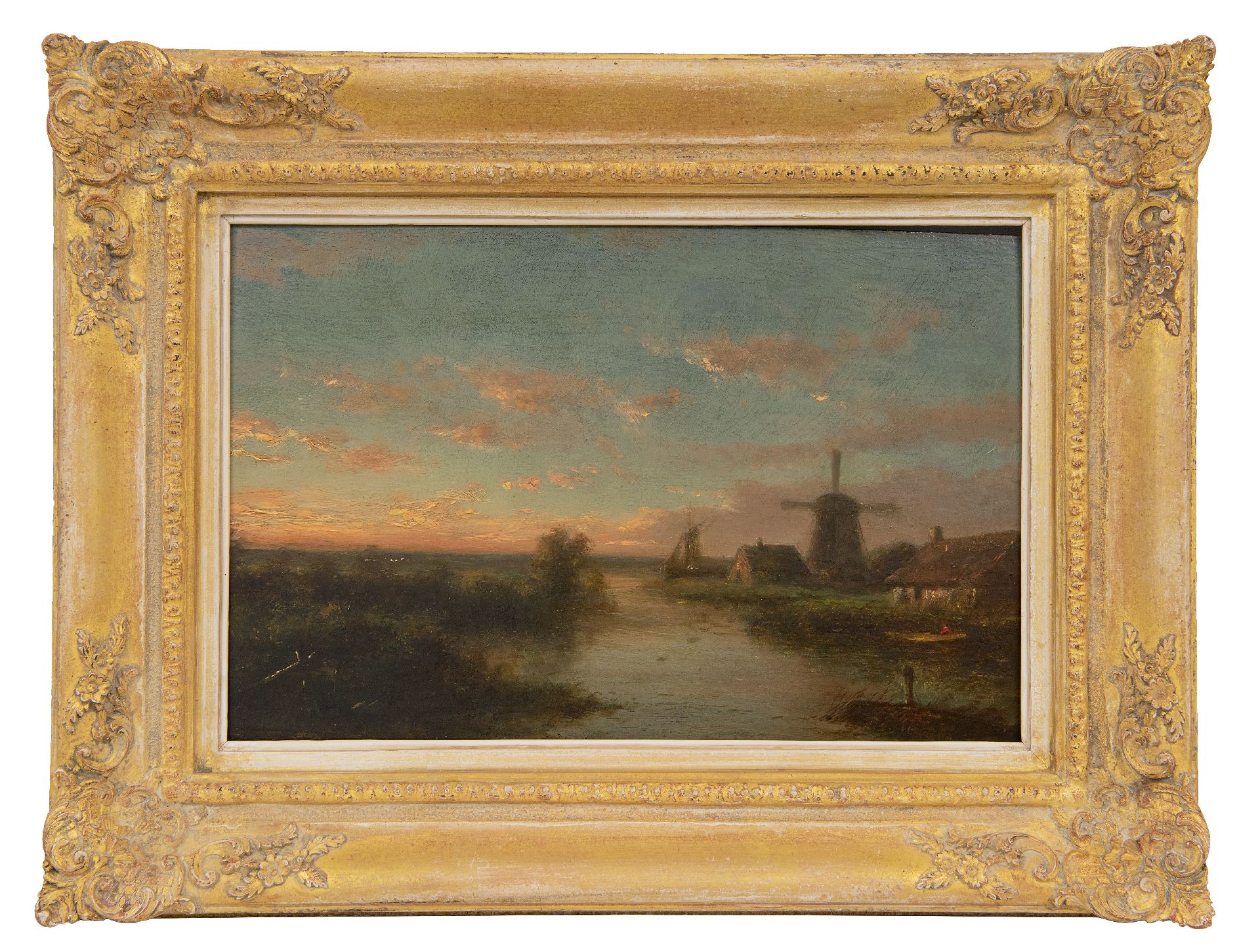Lodewijk Johannes Kleijn kunstwerk • schilderij • te koop Rivierlandschap bij zonsondergang