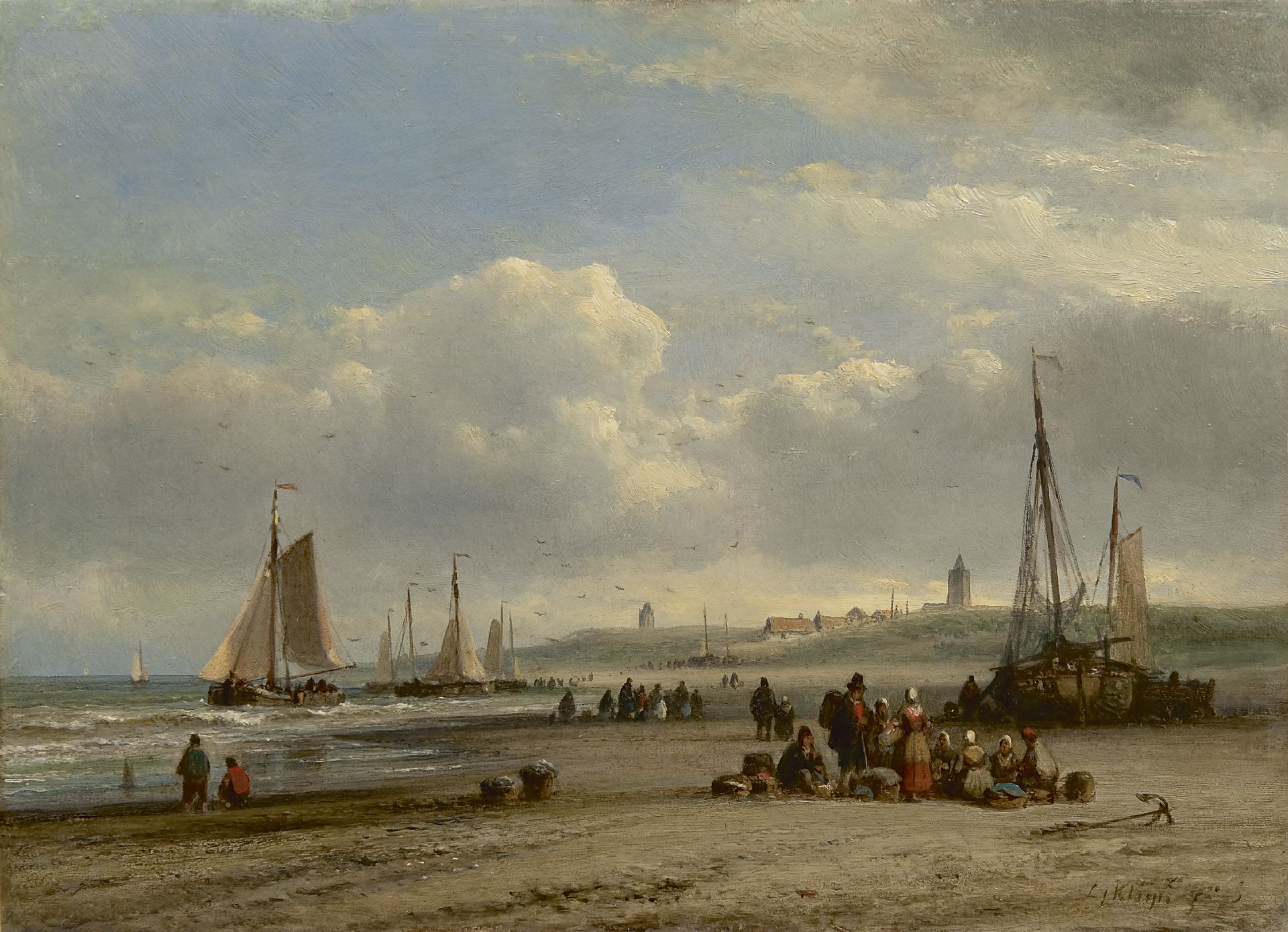 Lodewijk Johannes Kleijn kunstwerk • schilderij • voorheen te koop Strandgezicht met schepen en visafslag