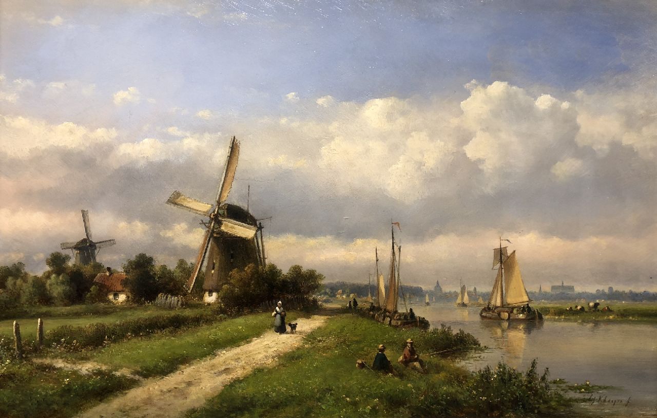 Lodewijk Johannes Kleijn kunstwerk • schilderij • voorheen te koop Zomers riviergezicht met zeilschepen (alleen tezamen met winter)