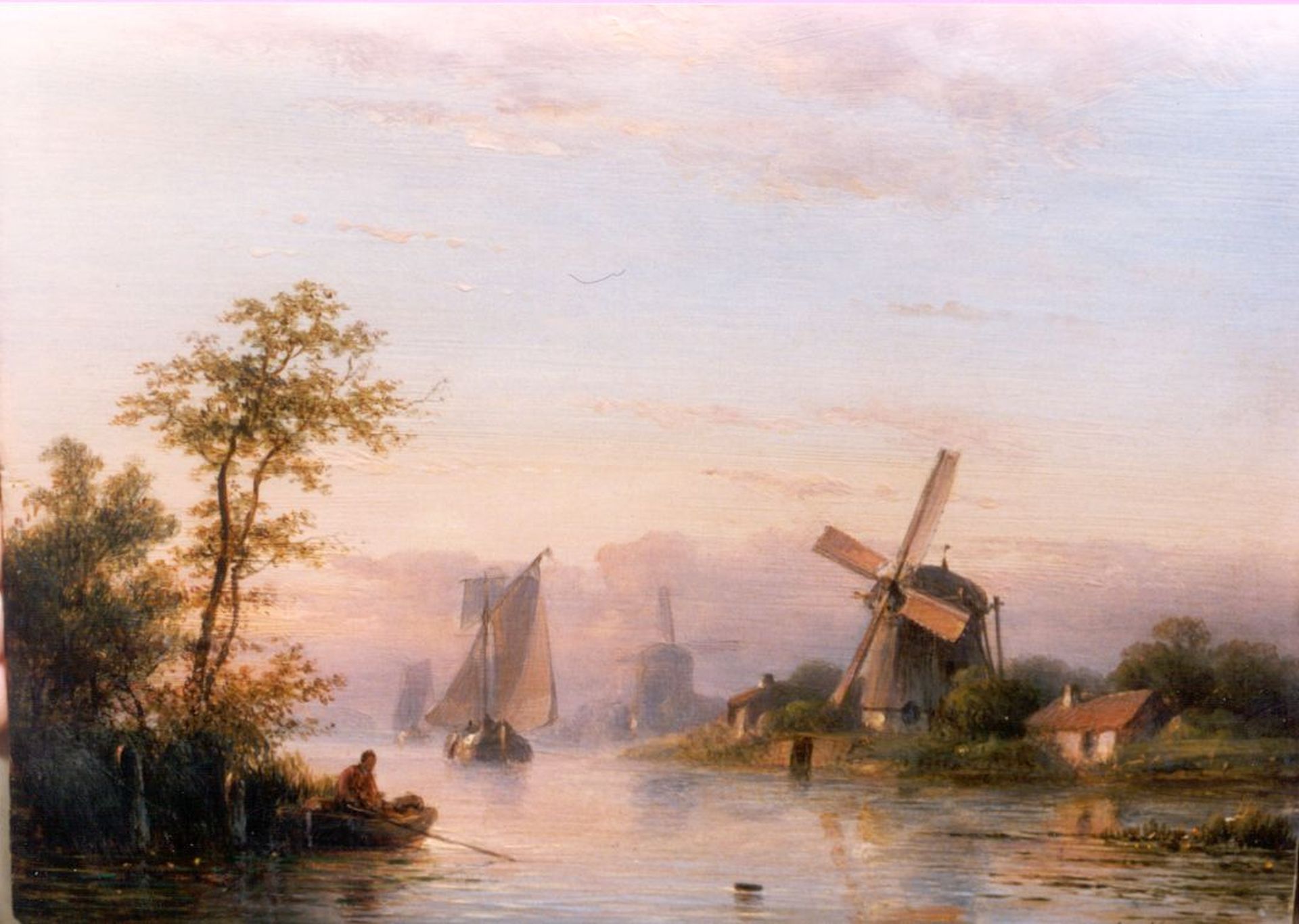 Lodewijk Johannes Kleijn kunstwerk • schilderij • voorheen te koop Zomers riviergezicht